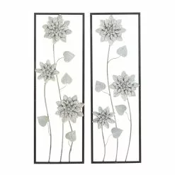 Grayson Lane 36-in H X 12-in W Contemporary Grey Metal Floral Wall Accent – Set Of 2
