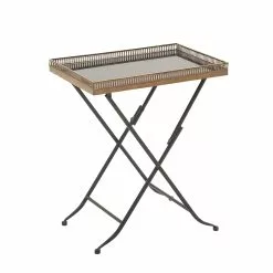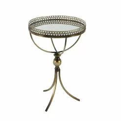 Grayson Lane Traditional Gold Brass Iron With Mirror Round End Table