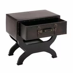 Grayson Lane Traditional Brown Wood And Faux Leather Square End Table