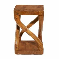 Grayson Lane Modern Twisted Brown Teak Wood Square Ottoman