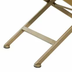 Grayson Lane Modern White Faux Fur Rectangle Ottoman With X-Shaped Gold Metal Frame