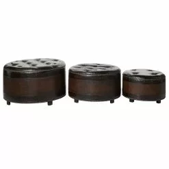 Grayson Lane Rustic Brown Faux Leather Round Ottomans – Set Of 3