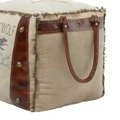 Grayson Lane Rustic Brown Canvas Square Ottoman With Handles