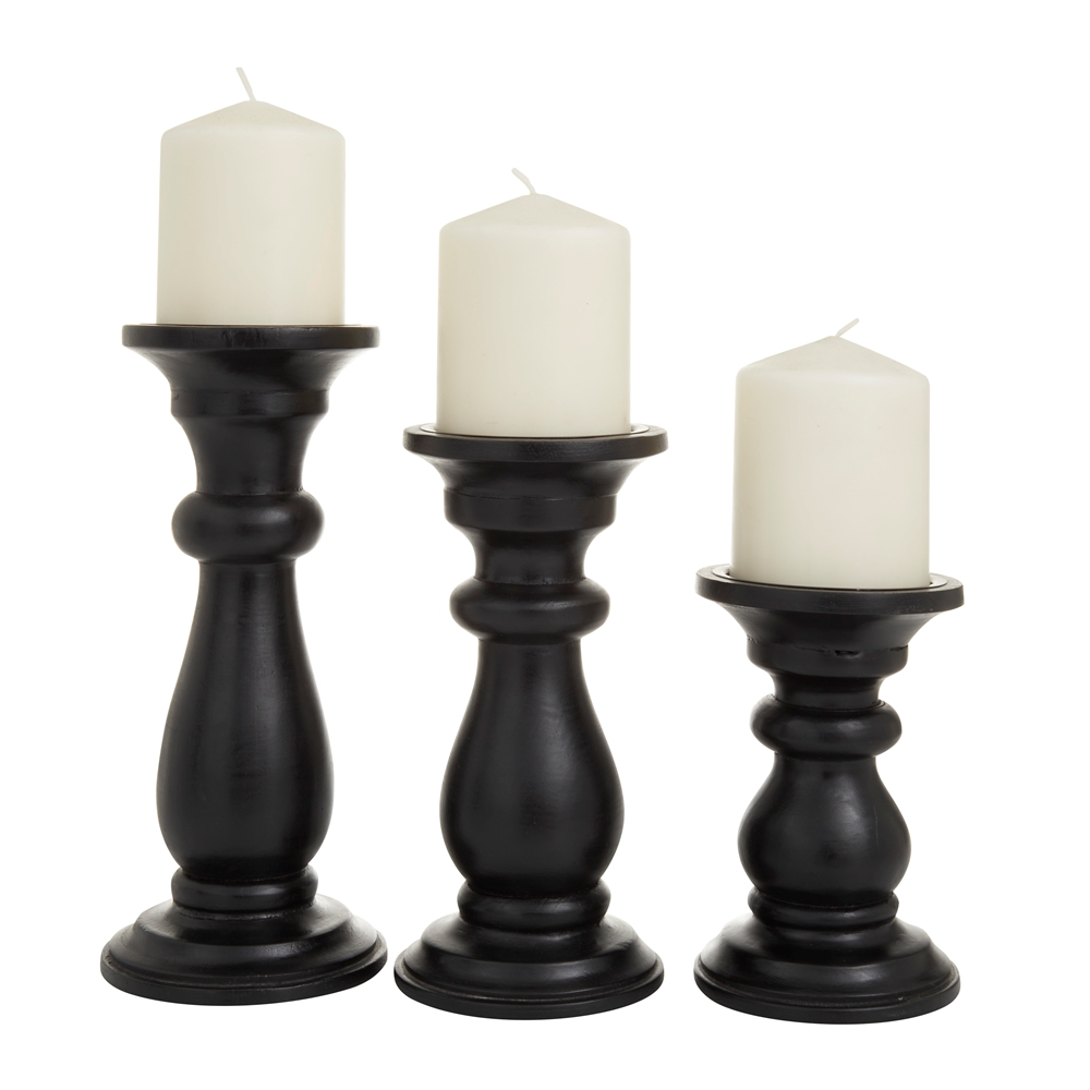 Infuse your space in the romantic candlelight glow that emits from this set of black candle holders.