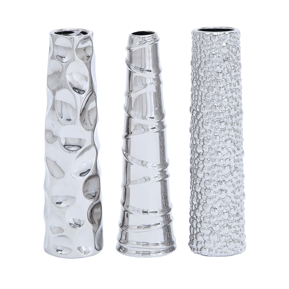 Grayson Lane 12-in x 3-in Glam Vase in Silver Ceramic – Set of 3