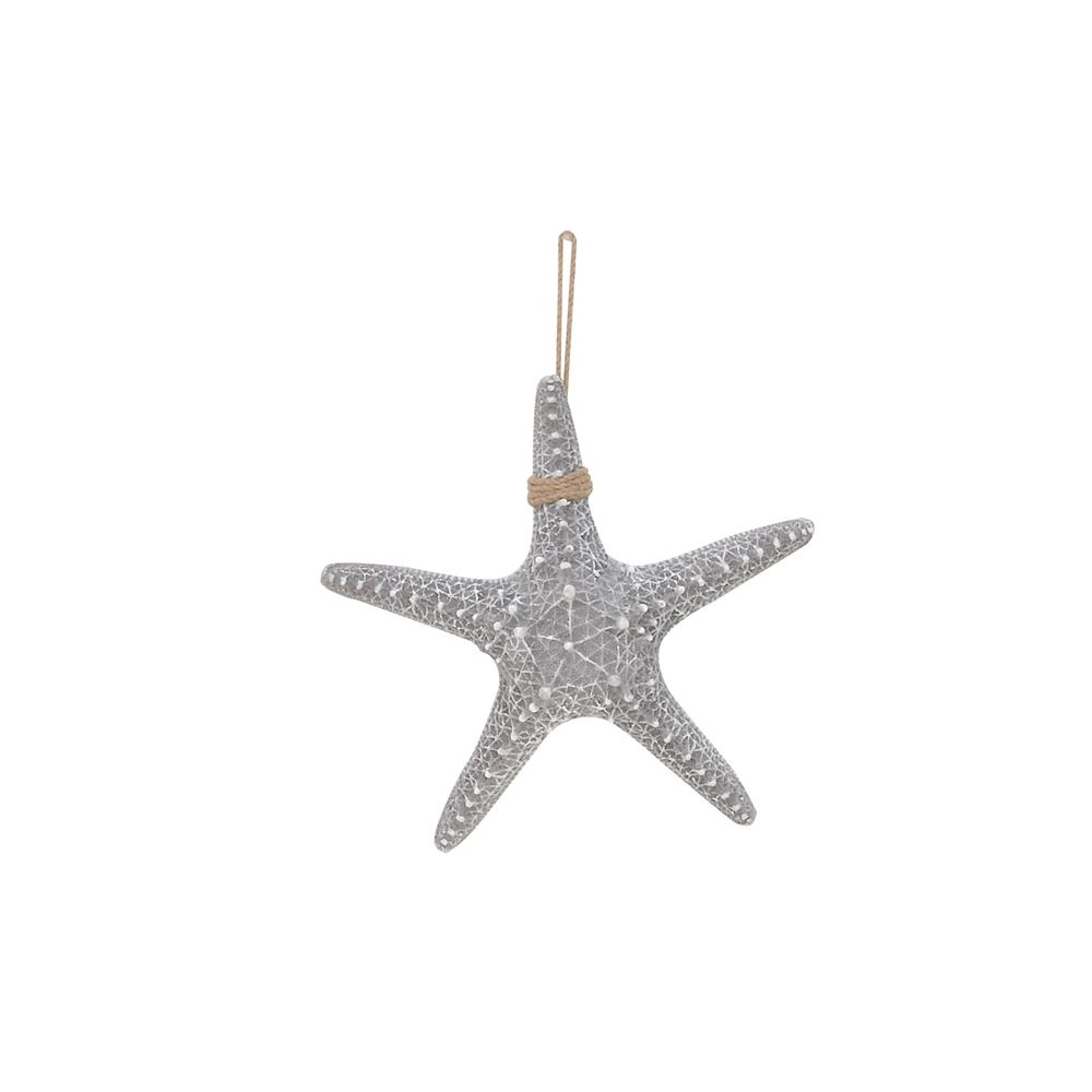 - A starfish wall decor with realistic details and a jute rope for easy hanging