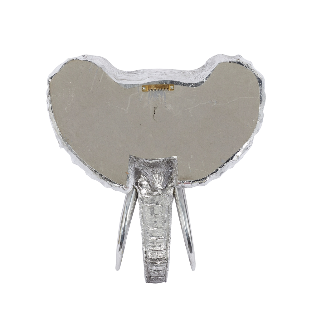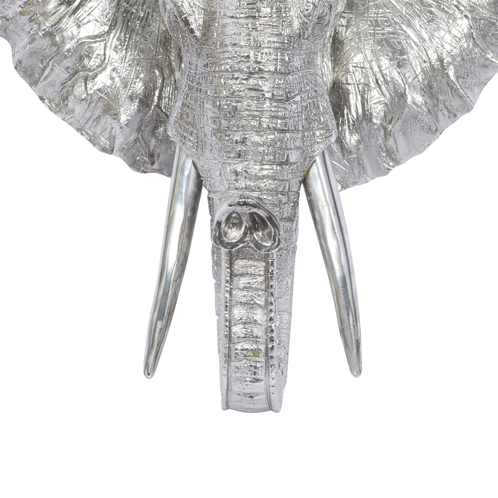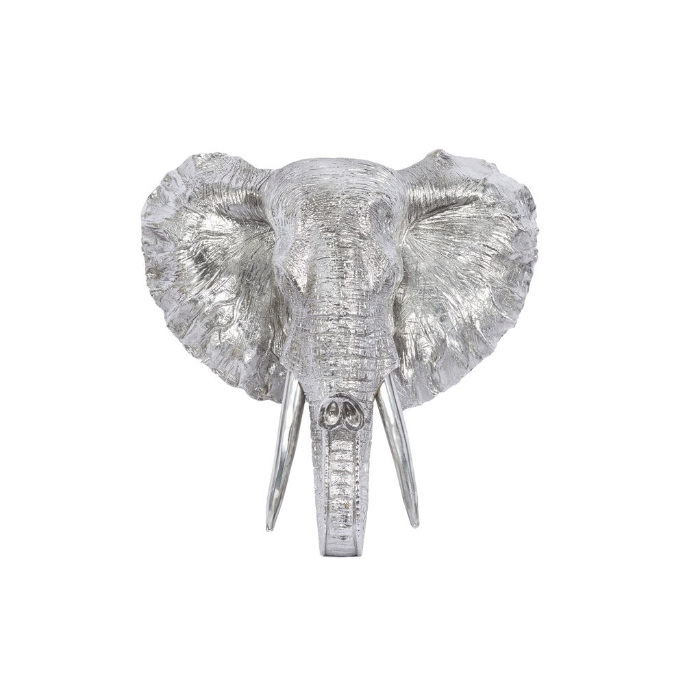 - Features a 3D-sculpted image of a realistic elephant head with long tusks