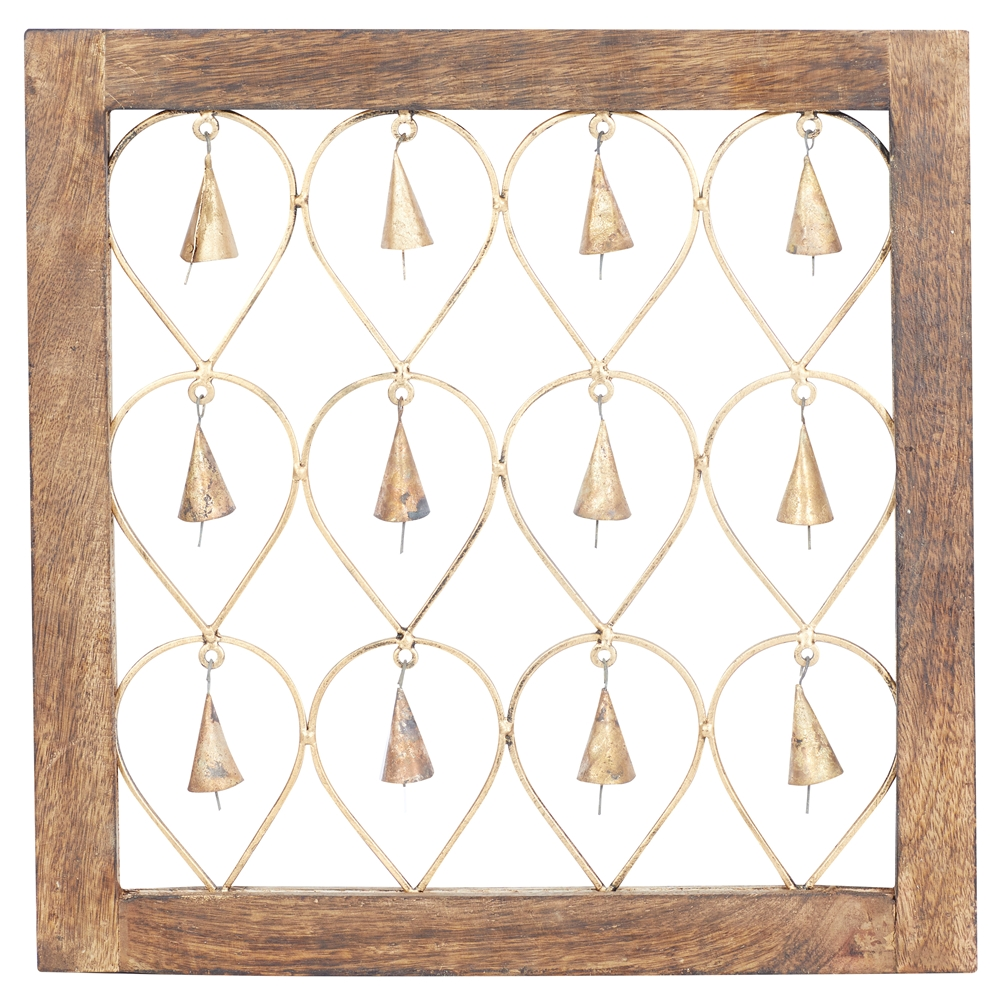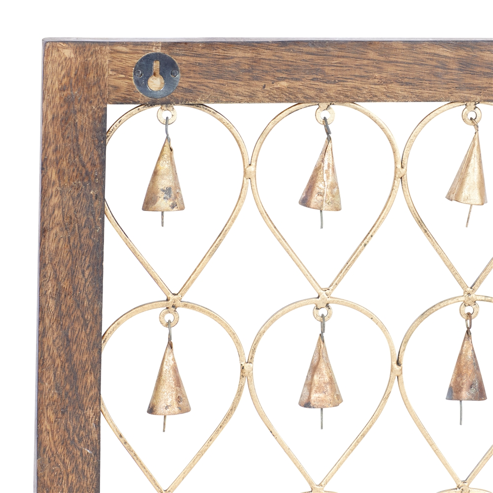 - Designed with iron hanging bells with a tarnished brass finish