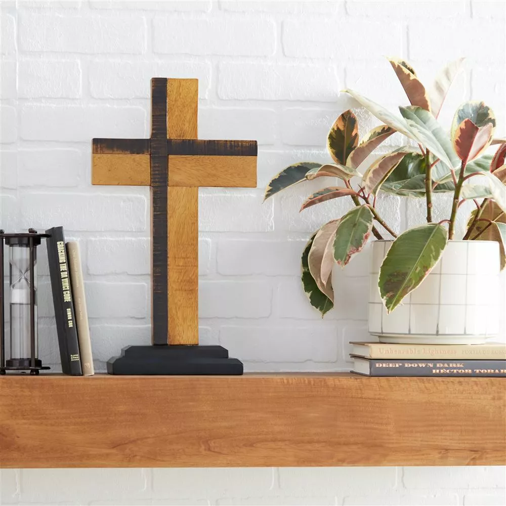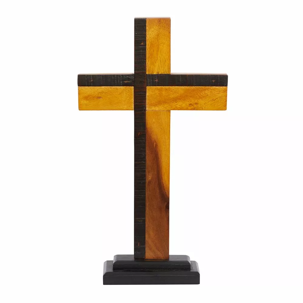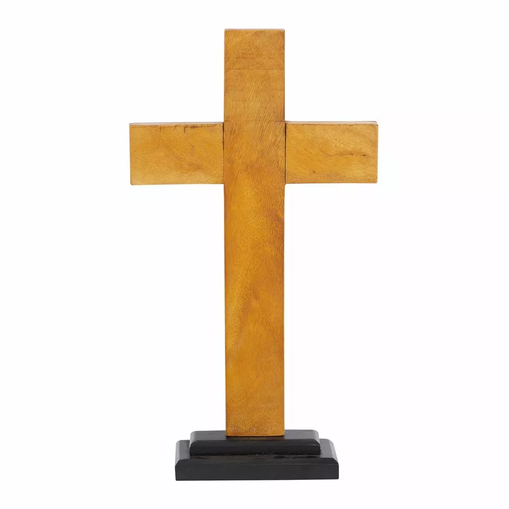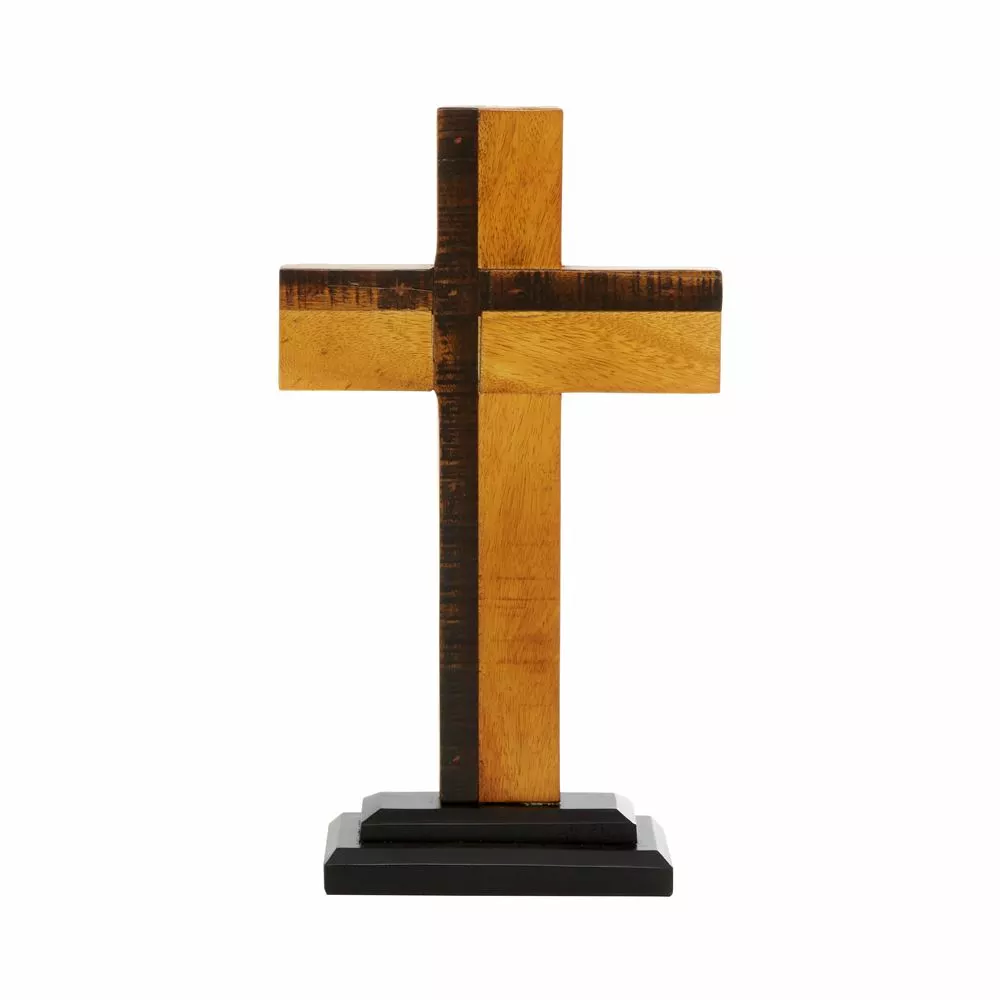 - Beautifully crafted standing cross features eco-friendly recycled wood