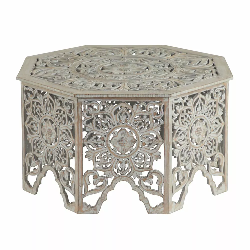 - This eclectic style inspired light gray Monterey pine wood carved coffee table is the pinnacle of any eclectic style inspired interior design when displayed with matching furniture and decor.