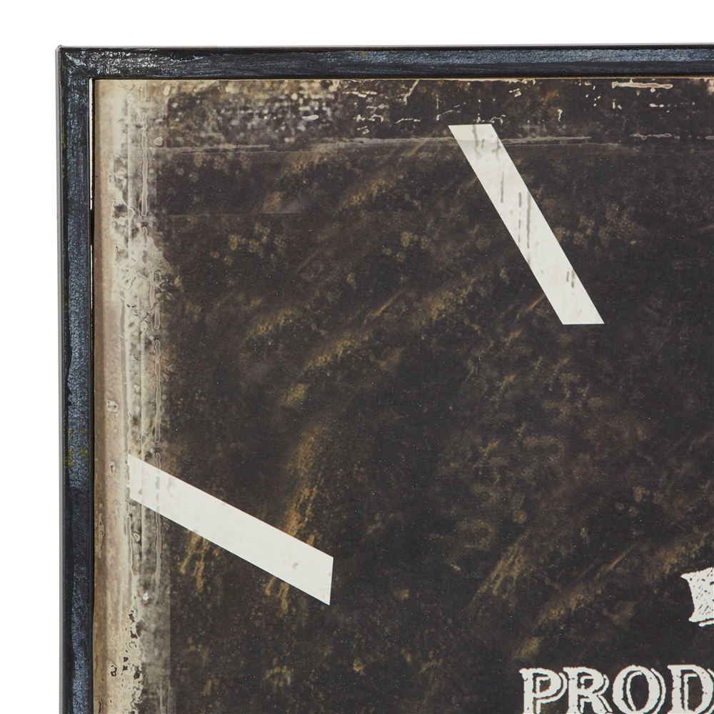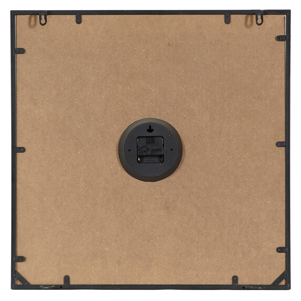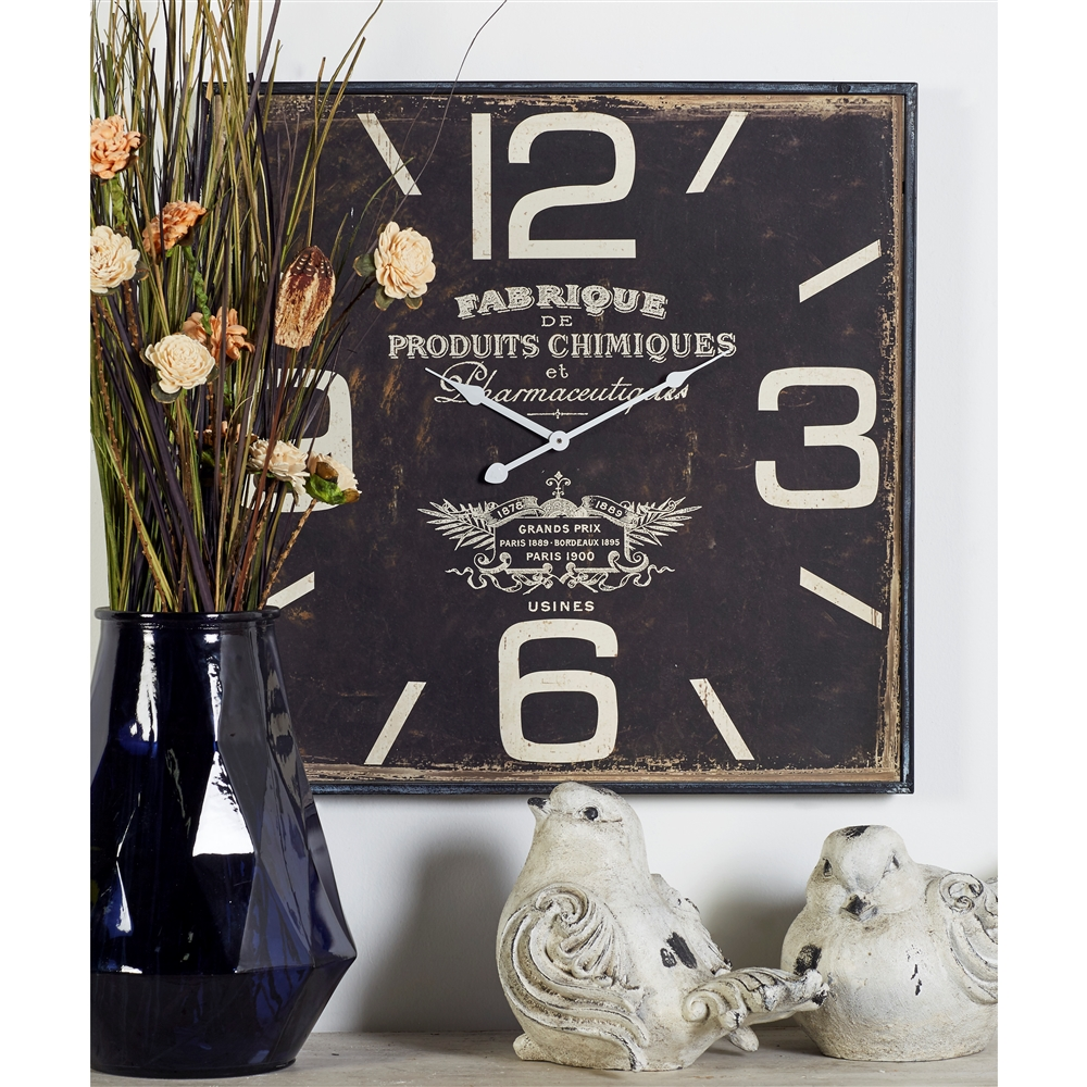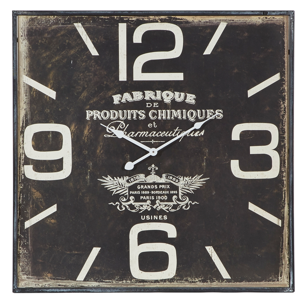 - This vintage style inspired wall clock features a square profile with white number markers and clock hands with white wordings on the clock face