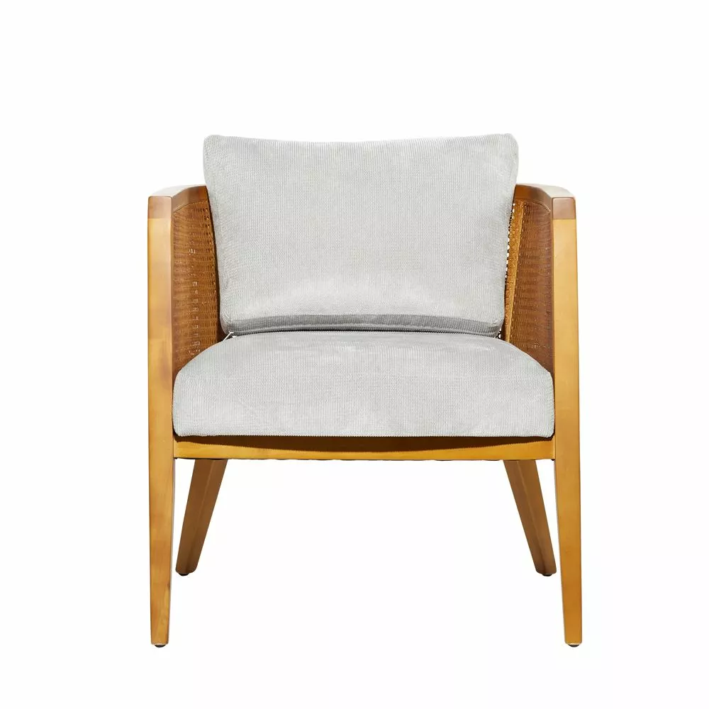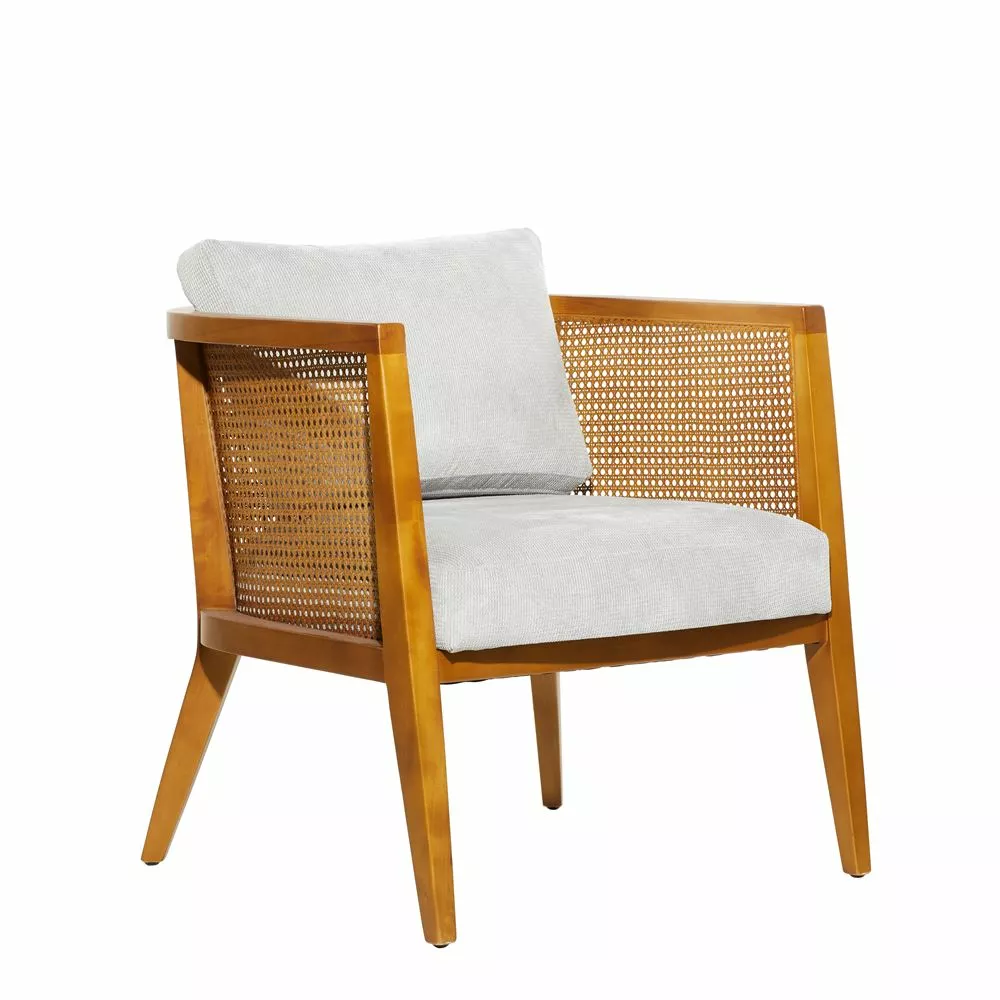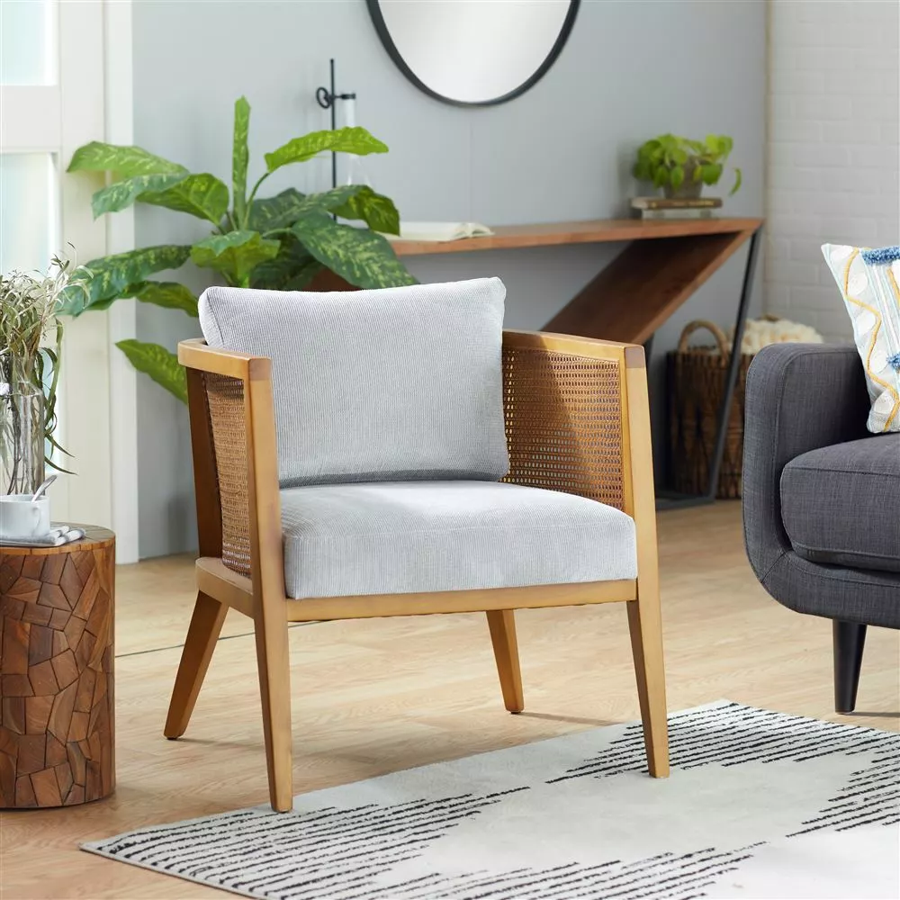 - This accent chair is constructed of solid aspen wood, polyurethane, polyester, and rattan