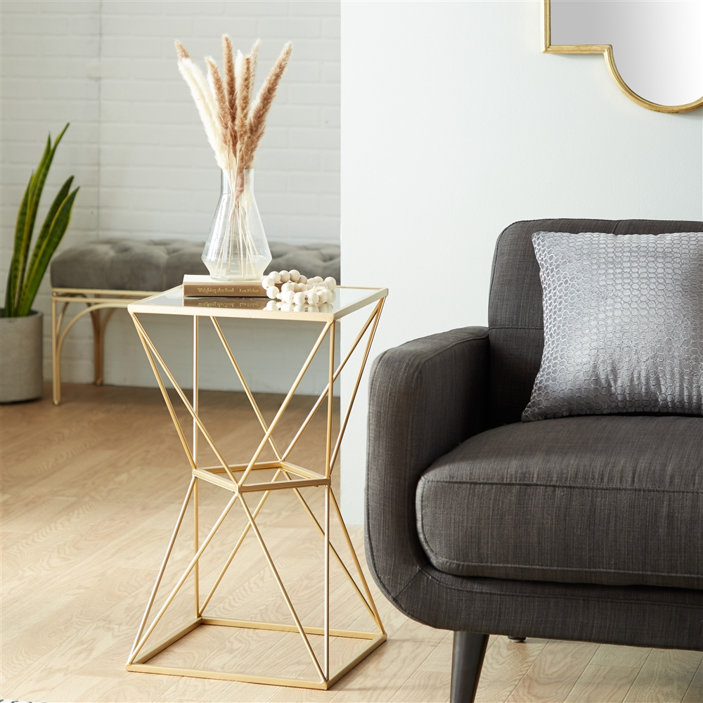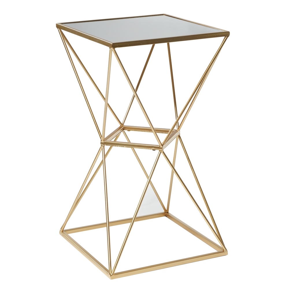 - This gold geometric accent table is a sophisticated marriage of solid iron and mirror