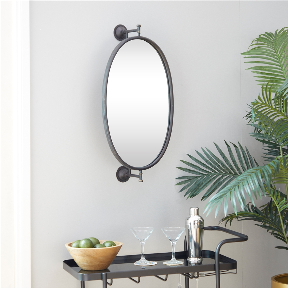 Grayson Lane 29-in x 15-in Oval Black Industrial Framed Wall Mirror