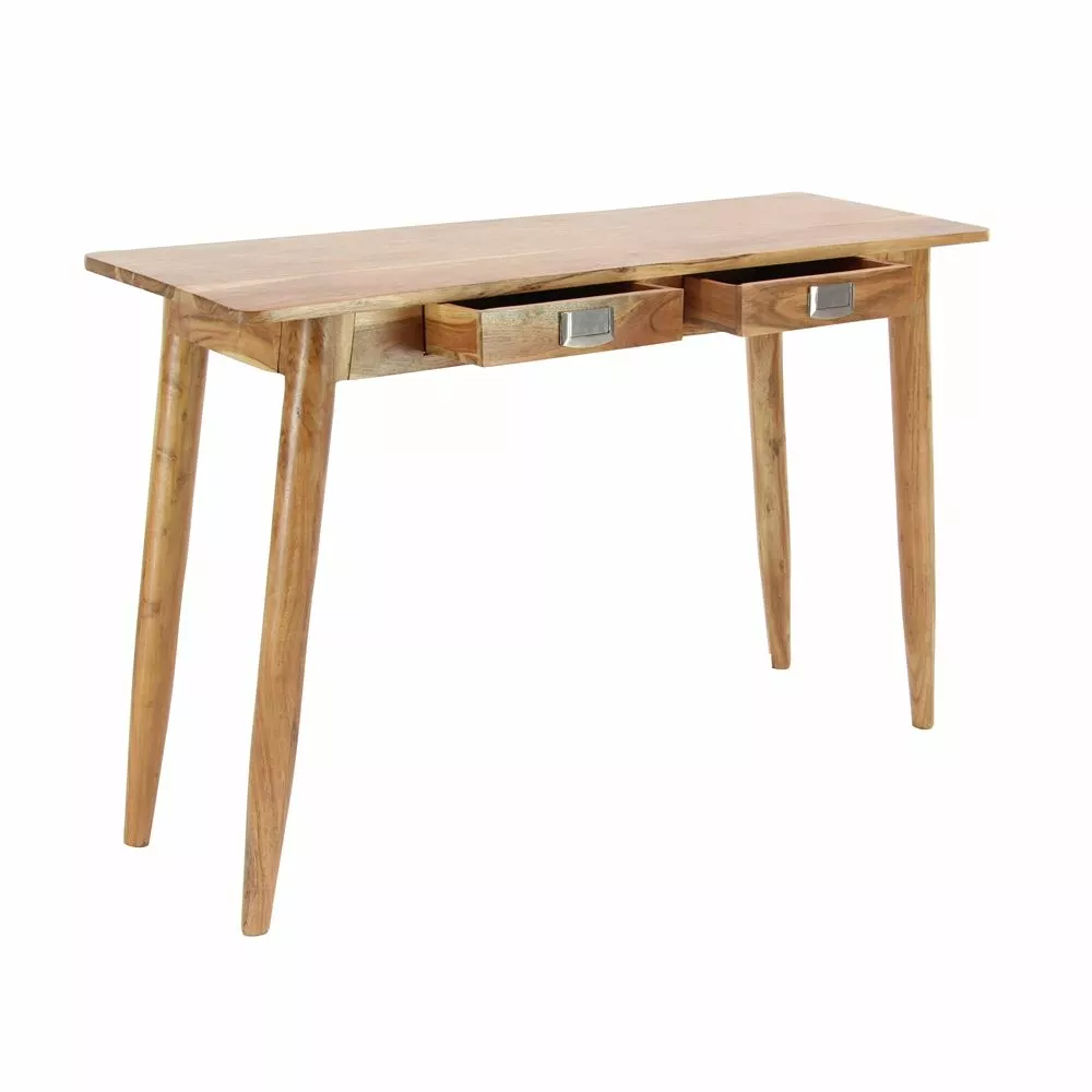 - This sleek console table with drawers is crafted with solid Kanaloa wood