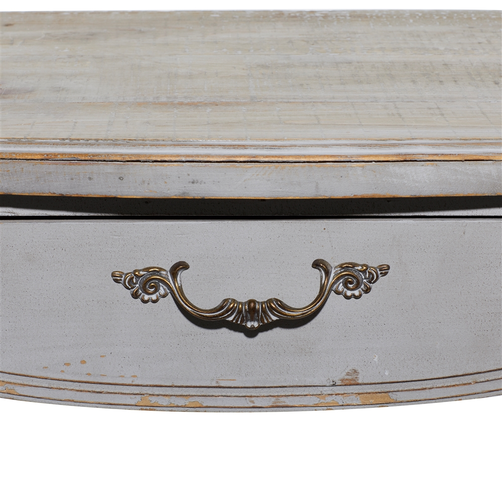 - This rectangular console table features a distressed white finish for a more farmhouse look
