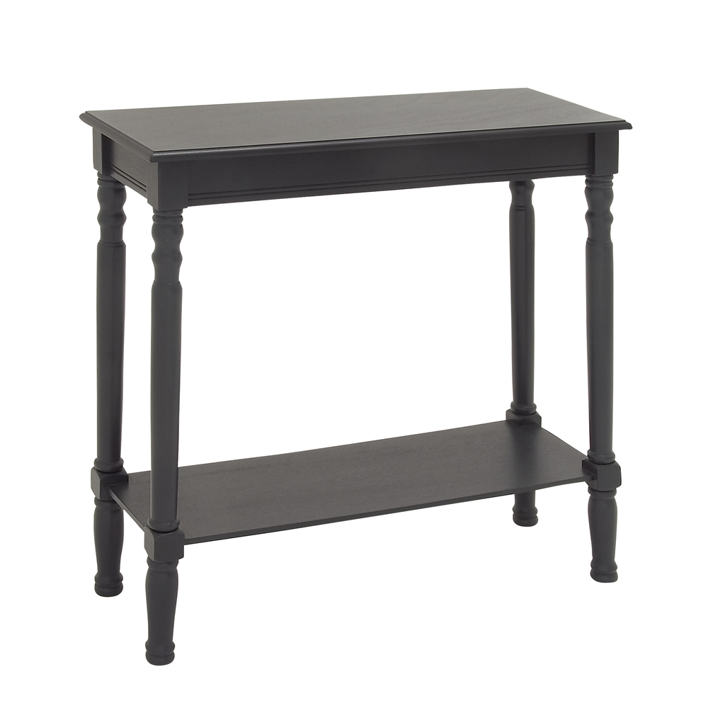 - This wood console table has a matte black finish for traditional appeal