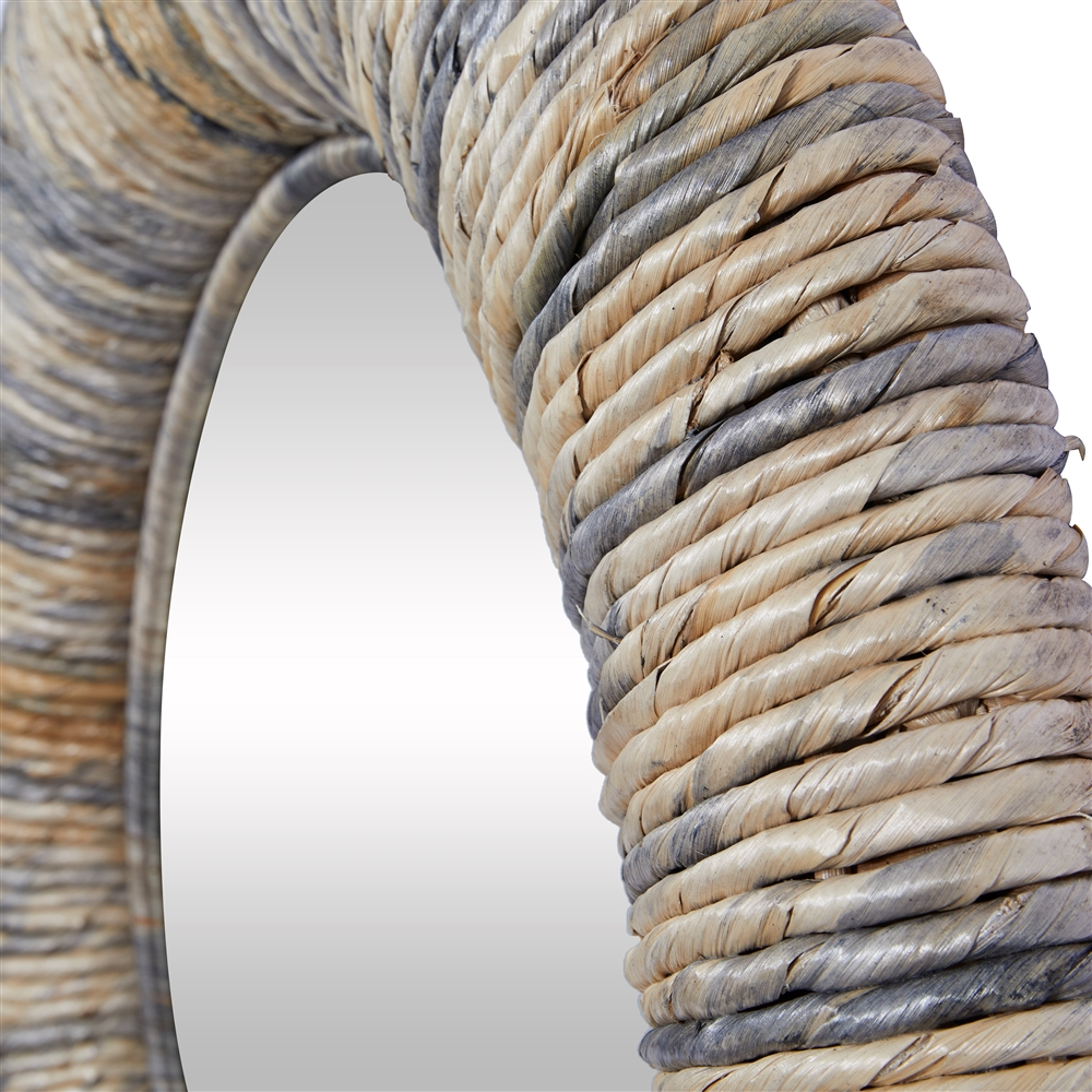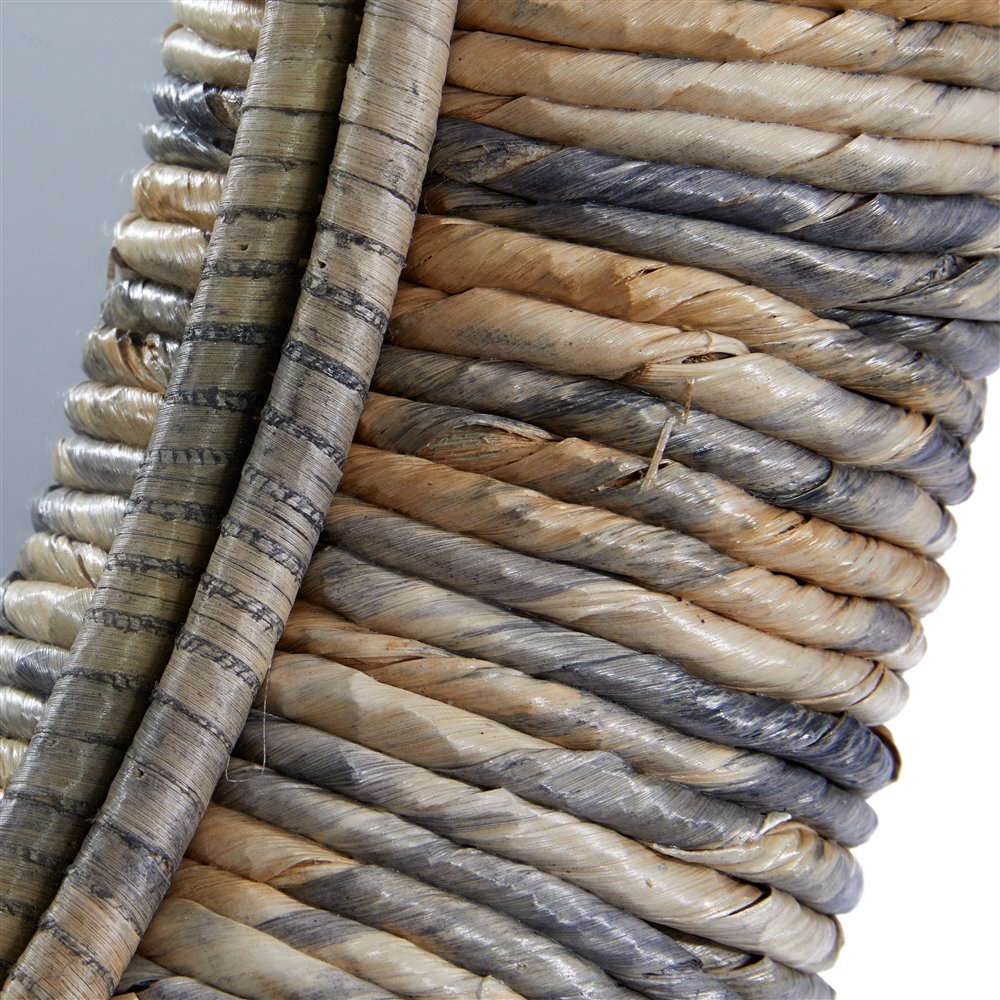 - 2-tone dried fibre rope design forming a thick framing centred around the round mirror