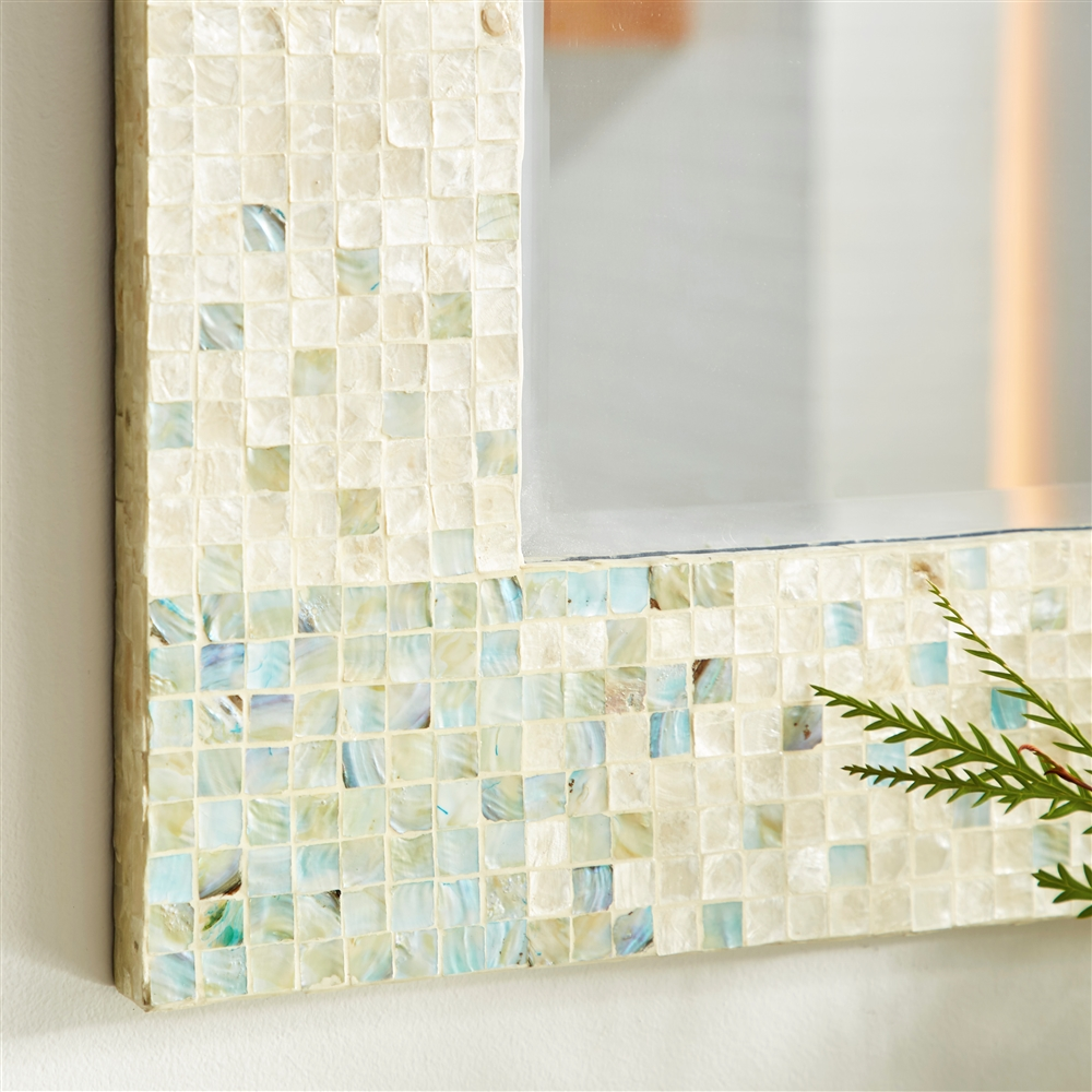 - It features a rectangular shape and a stunning mosaic-patterned mussel shells inlay frame