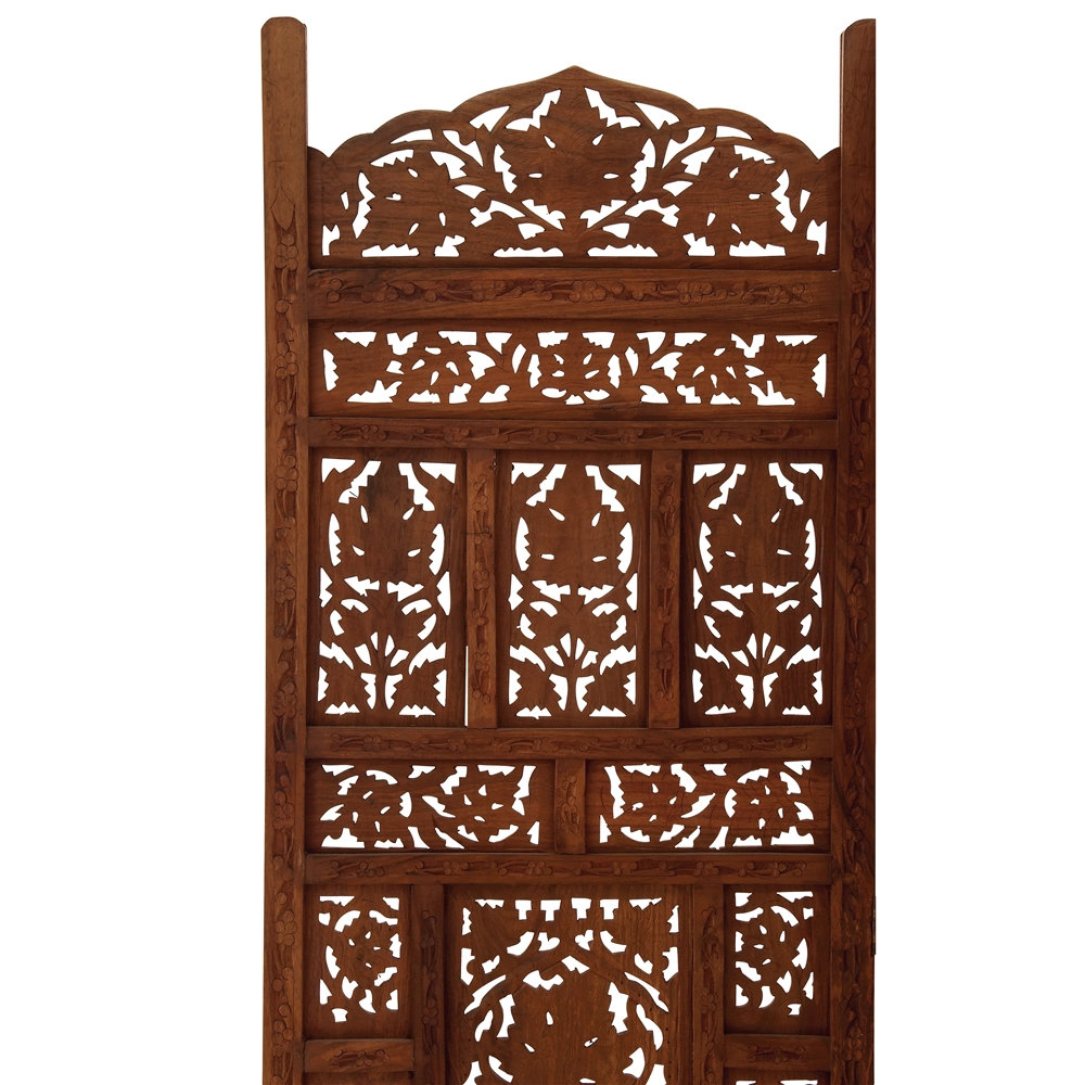 - This divider displays pierced leaf pattern design and features four hinged panels with arched tops and footed base