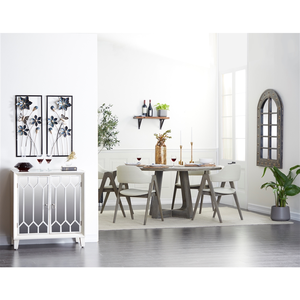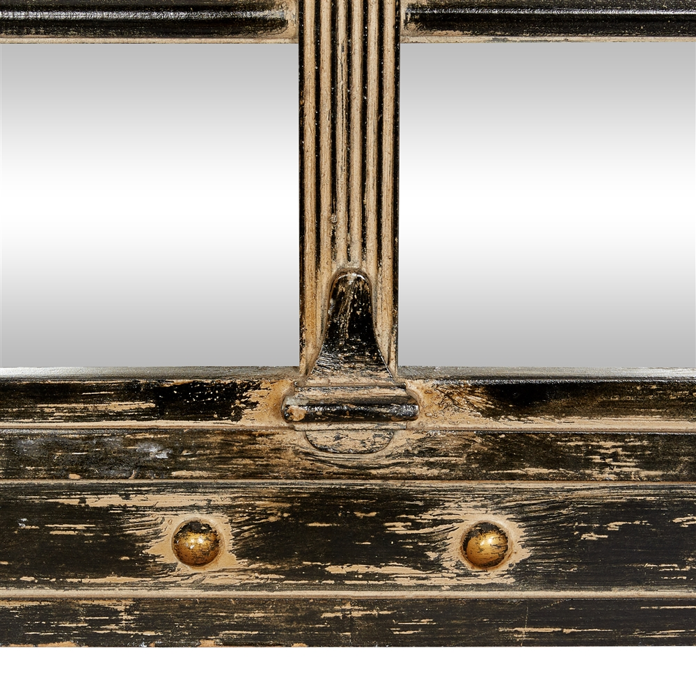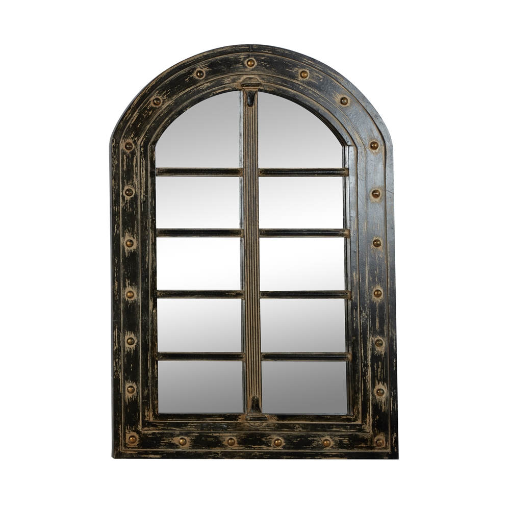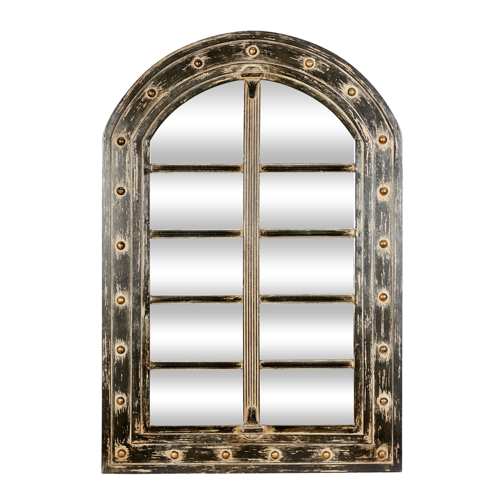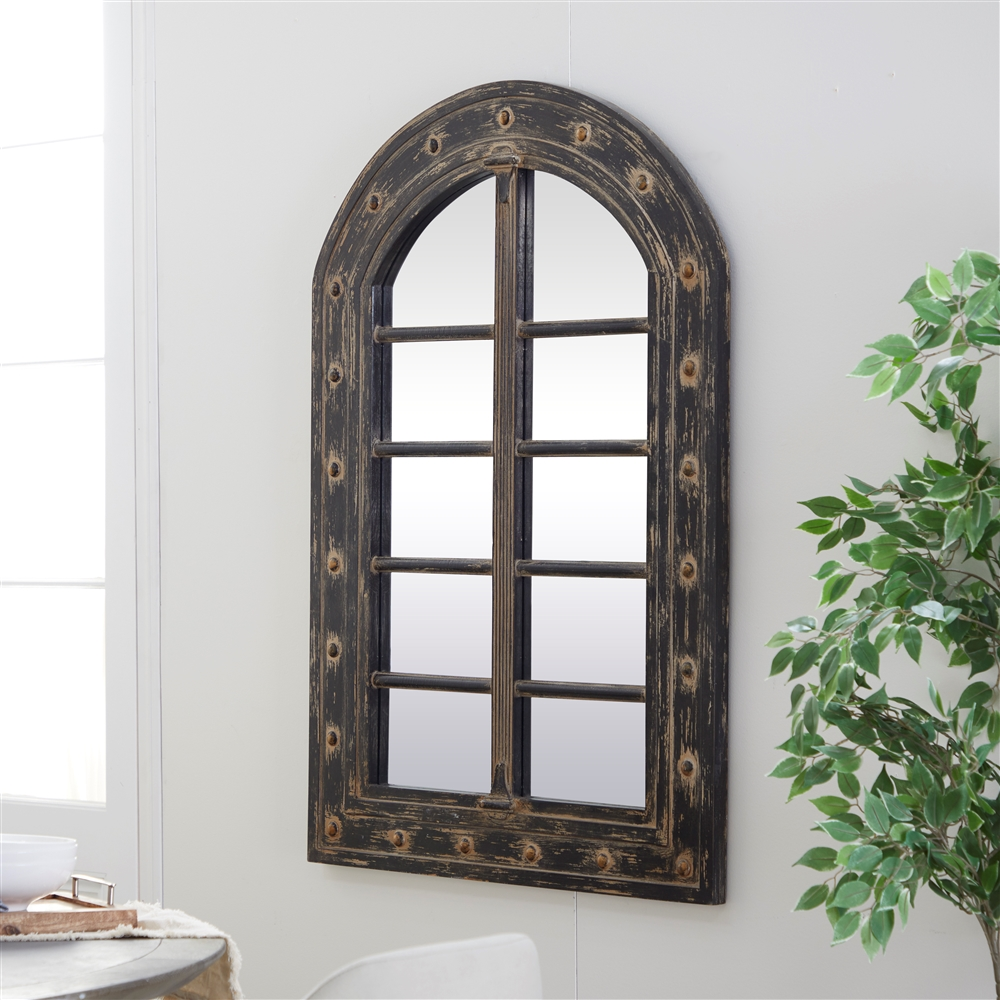 - Features an arched window panel design a wooden grid framing at the centre of the mirror