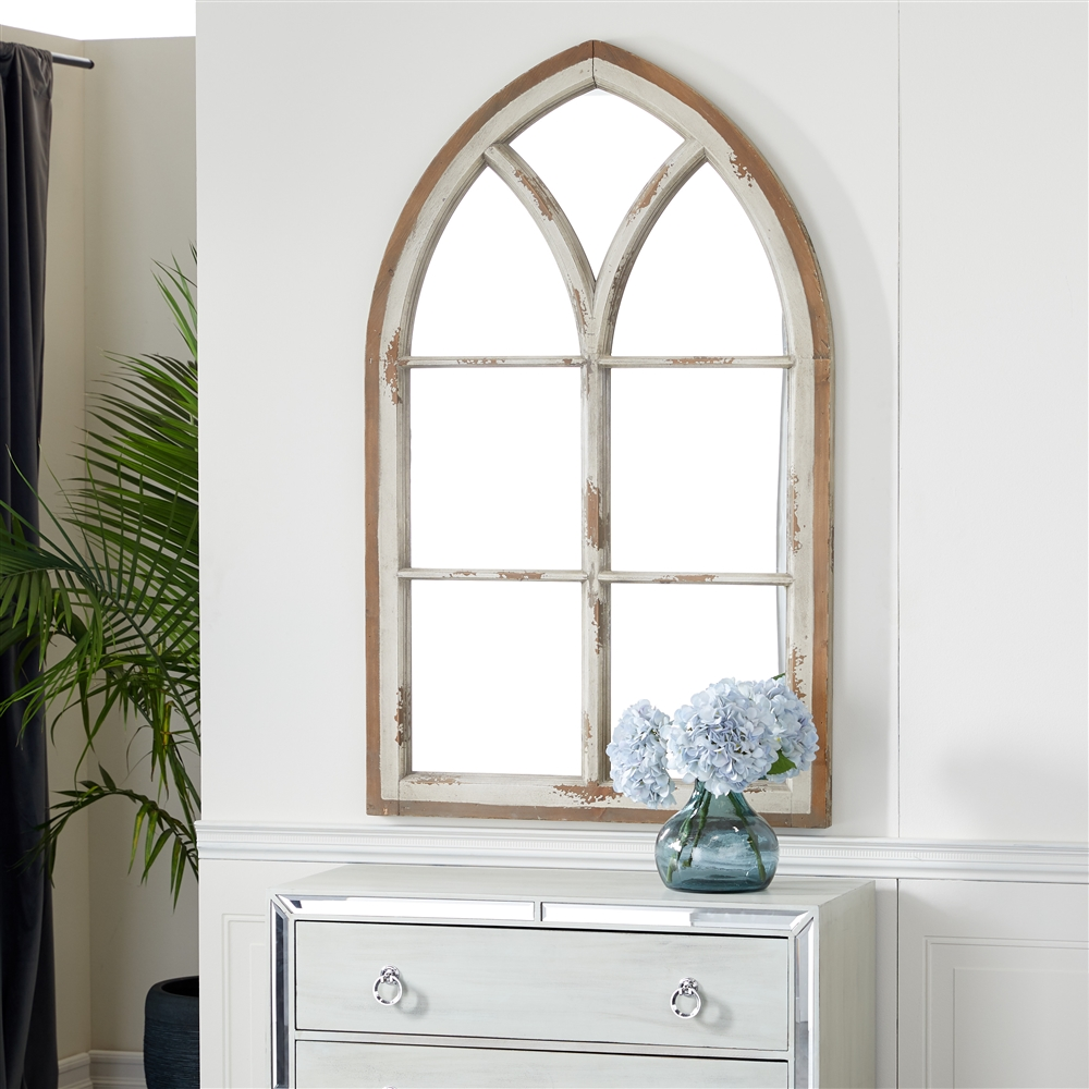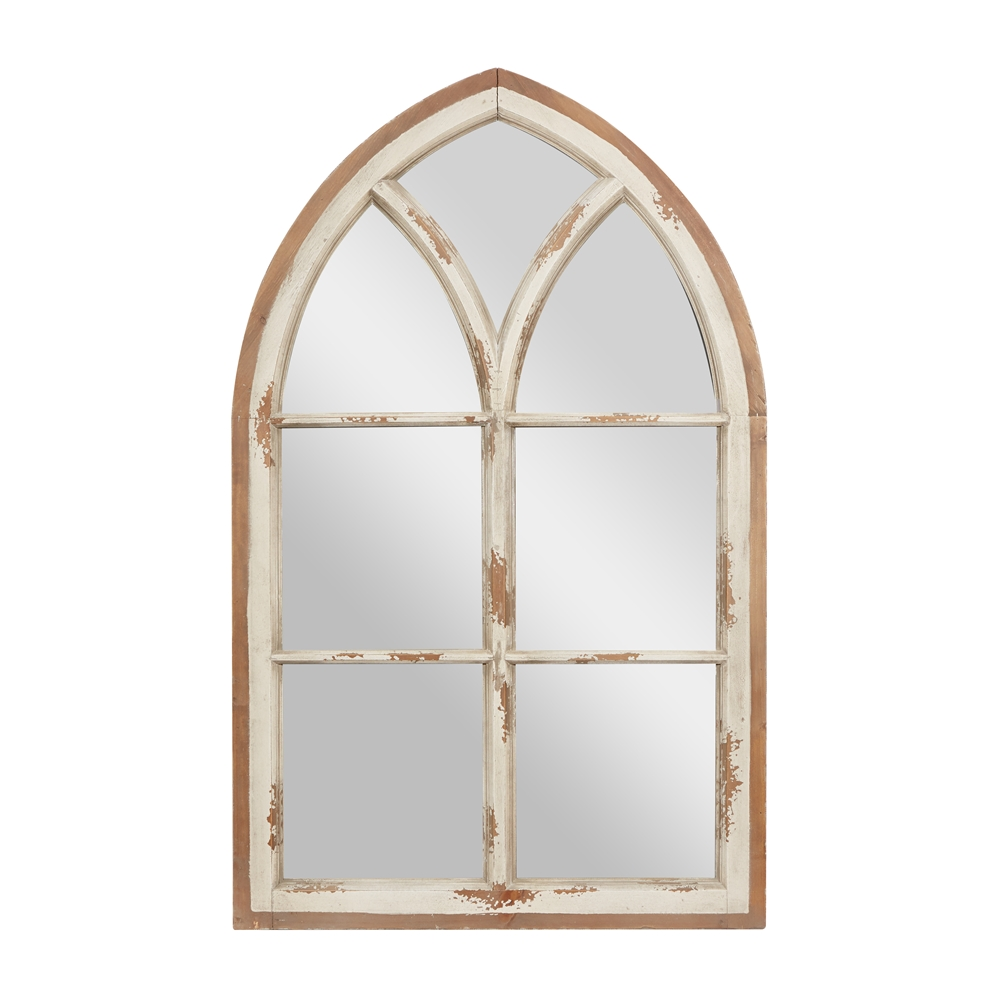 - Arched mirror with a window frame interior with glass mirrors