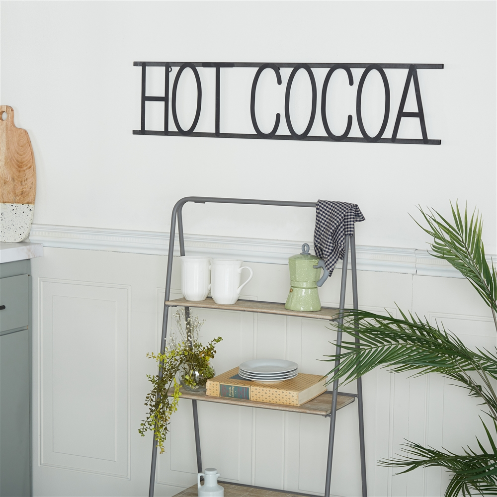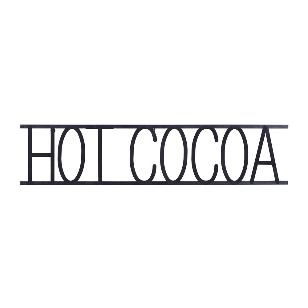 - “Features a large “”Hot Cocoa”” sign between 2 rods”