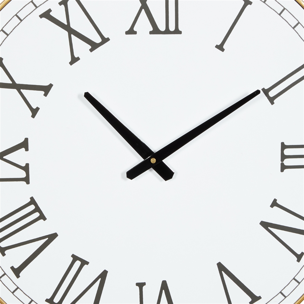 - Comes with a black finish on the Roman numeral hour markers and the bar line minute markers
