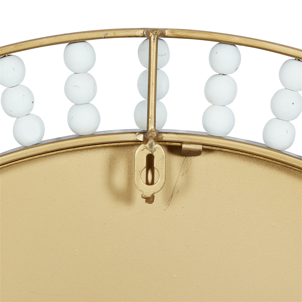 - Features a mesmerizing pattern of white pearl beads and gold rings