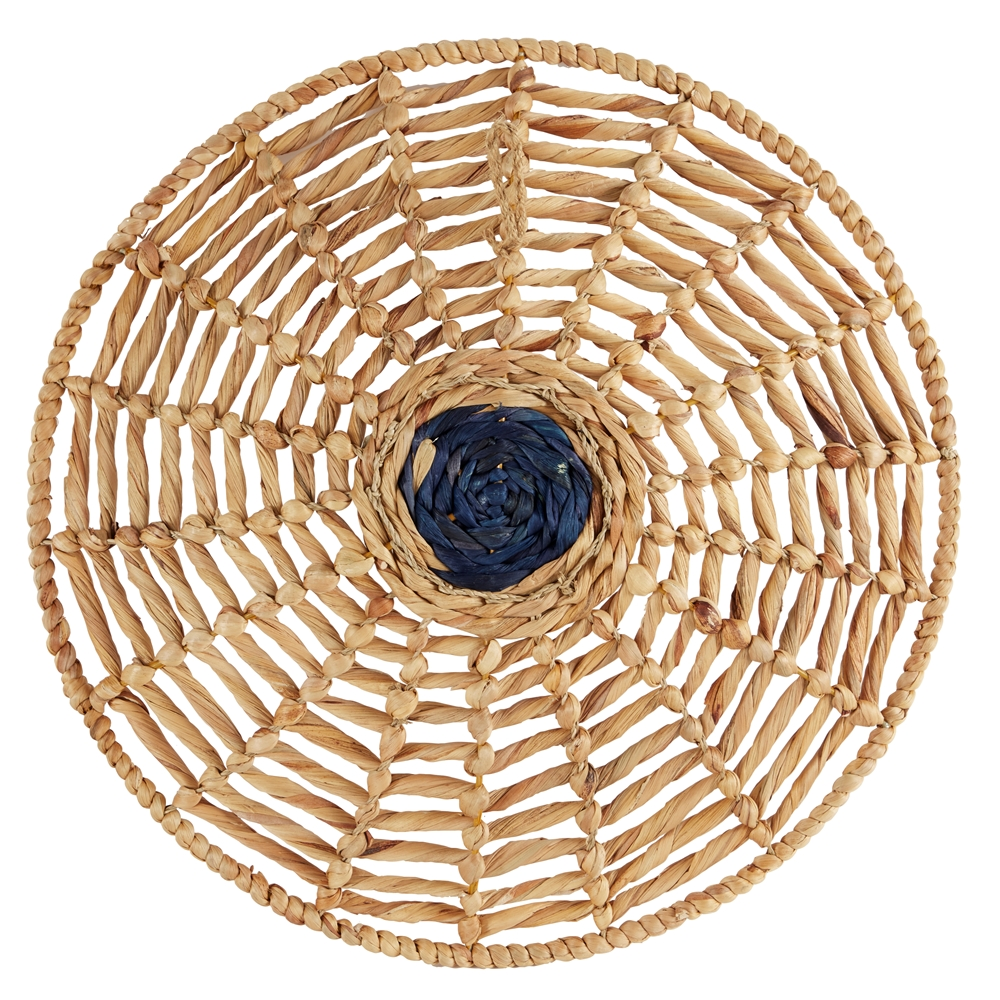 - Features a loose weaving of dried plant materials to form the flat basket concept