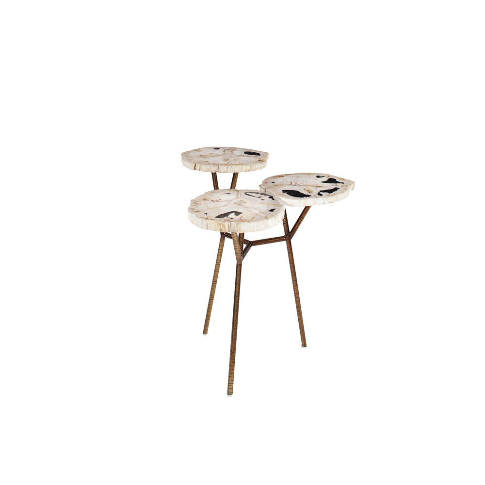 - 2 strips of brass bands intertwined along the legs for added texture to the solid brass legs