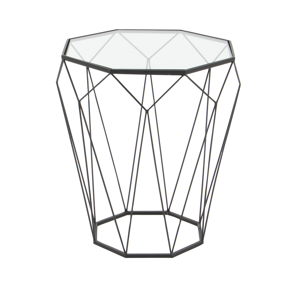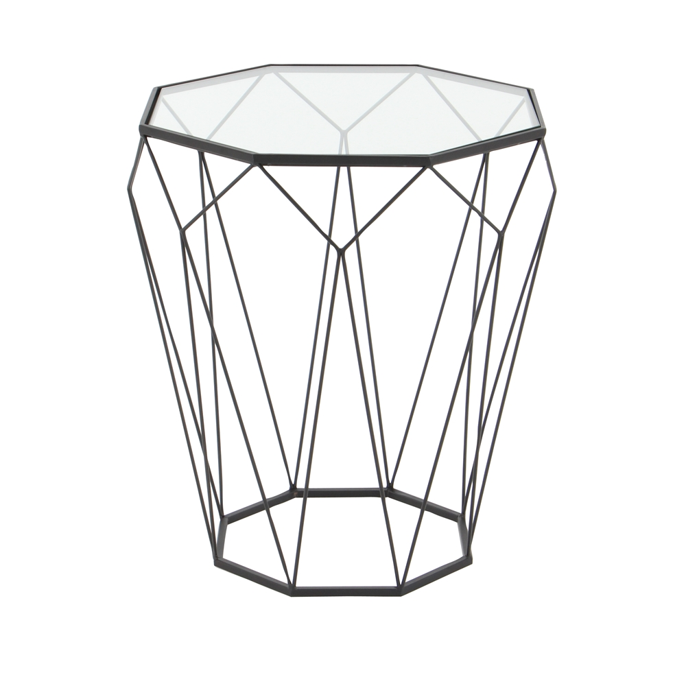 - This geometric drum accent table is a posh medley of solid iron and clear glass