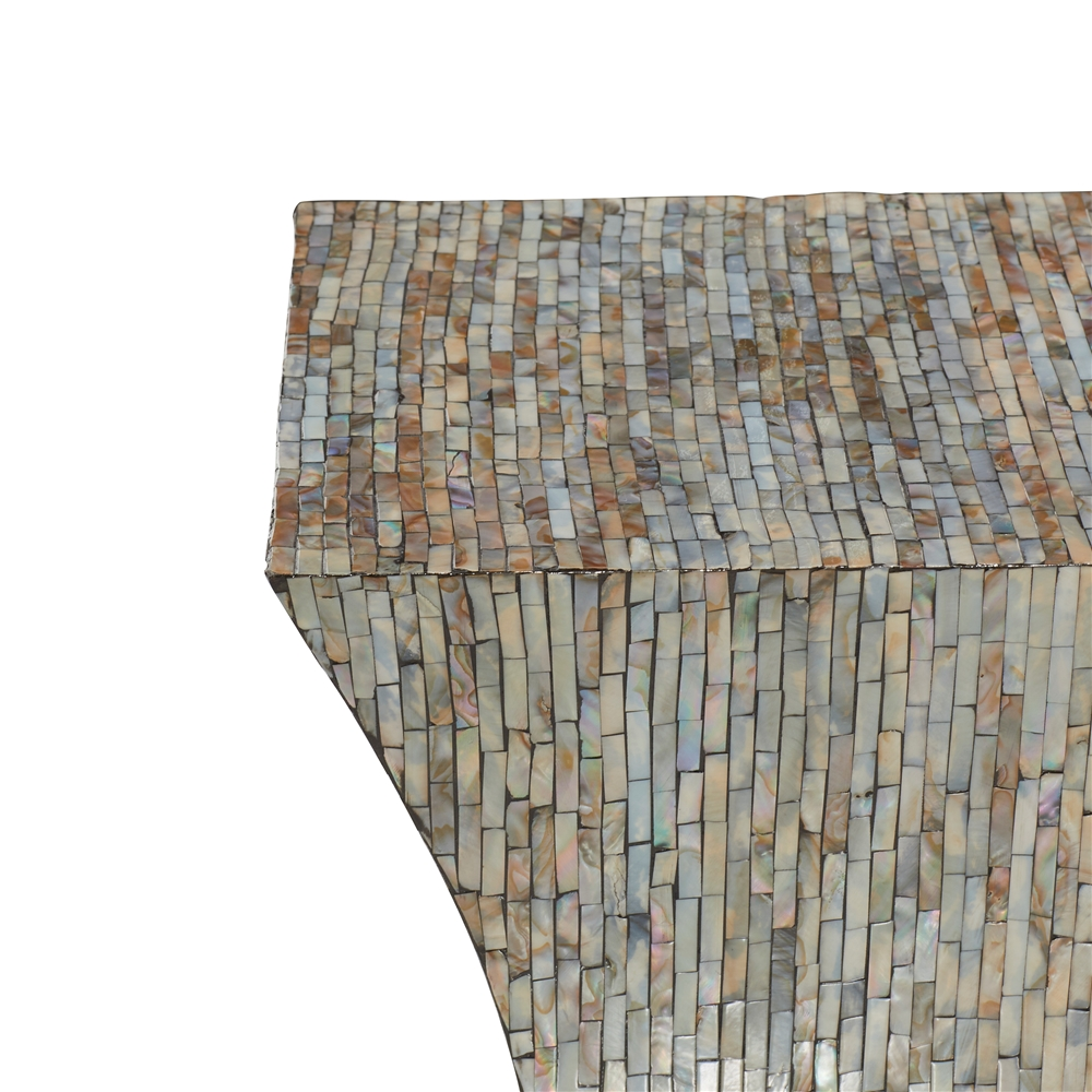 - The sturdy table is made from a combination of shell material and wood