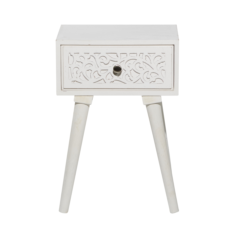 - This bedside table is made of MDF and solid mango wood