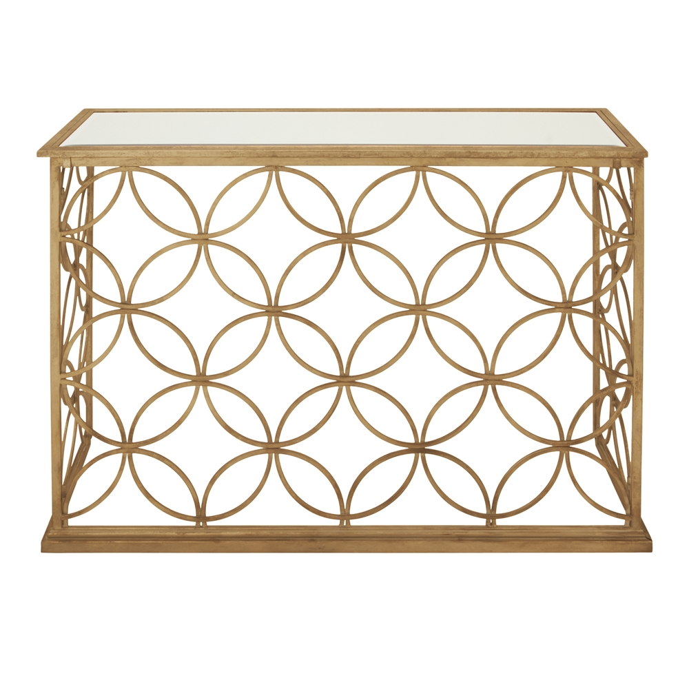 This charming gold metal console table is ideal for the living room, the entryway, the hallway, the kitchen, and the master bedroom.