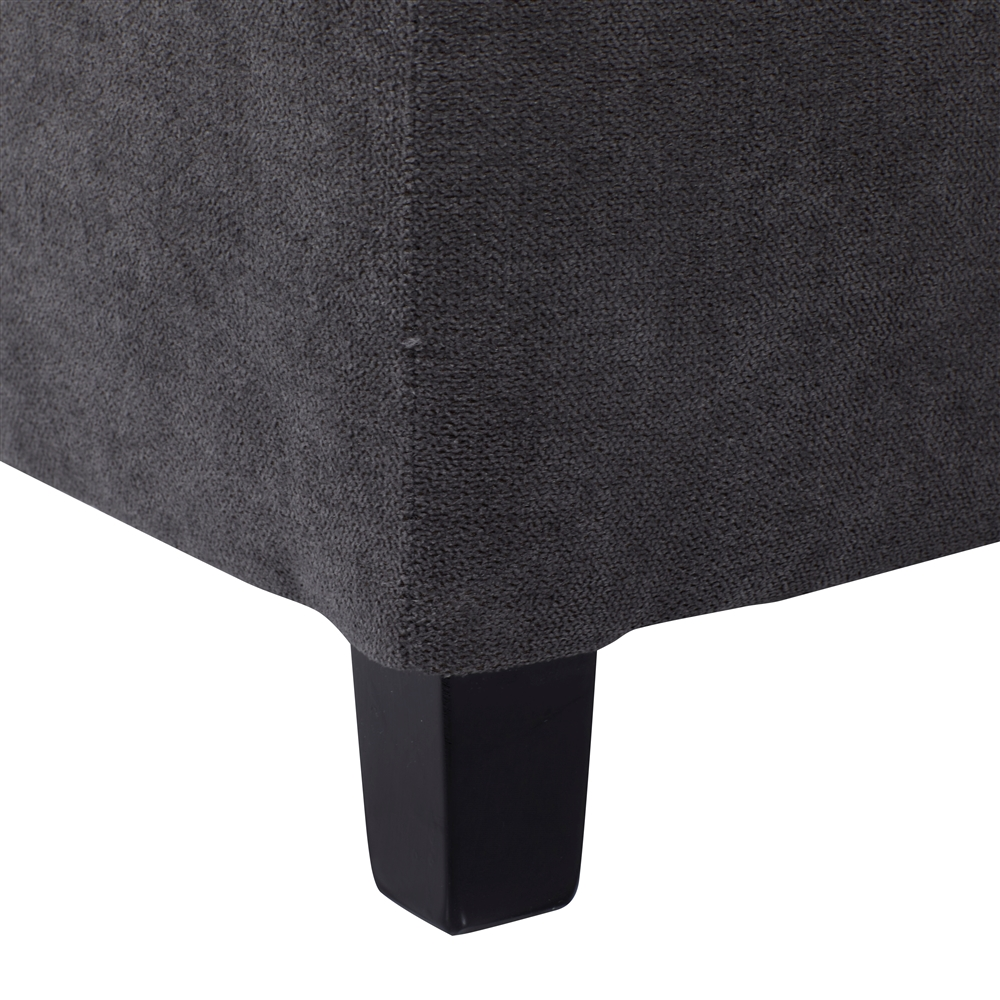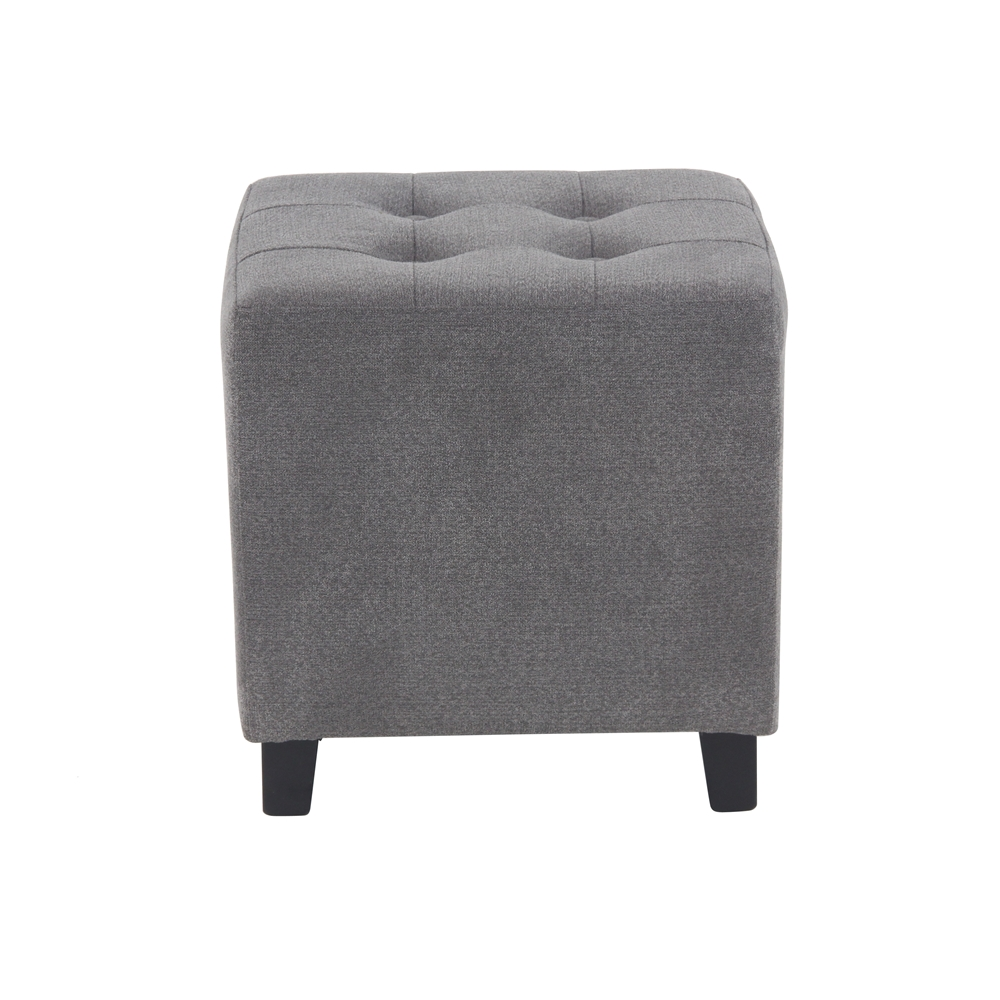 - This pouf has 4 black tapered legs with tufted seat cushion