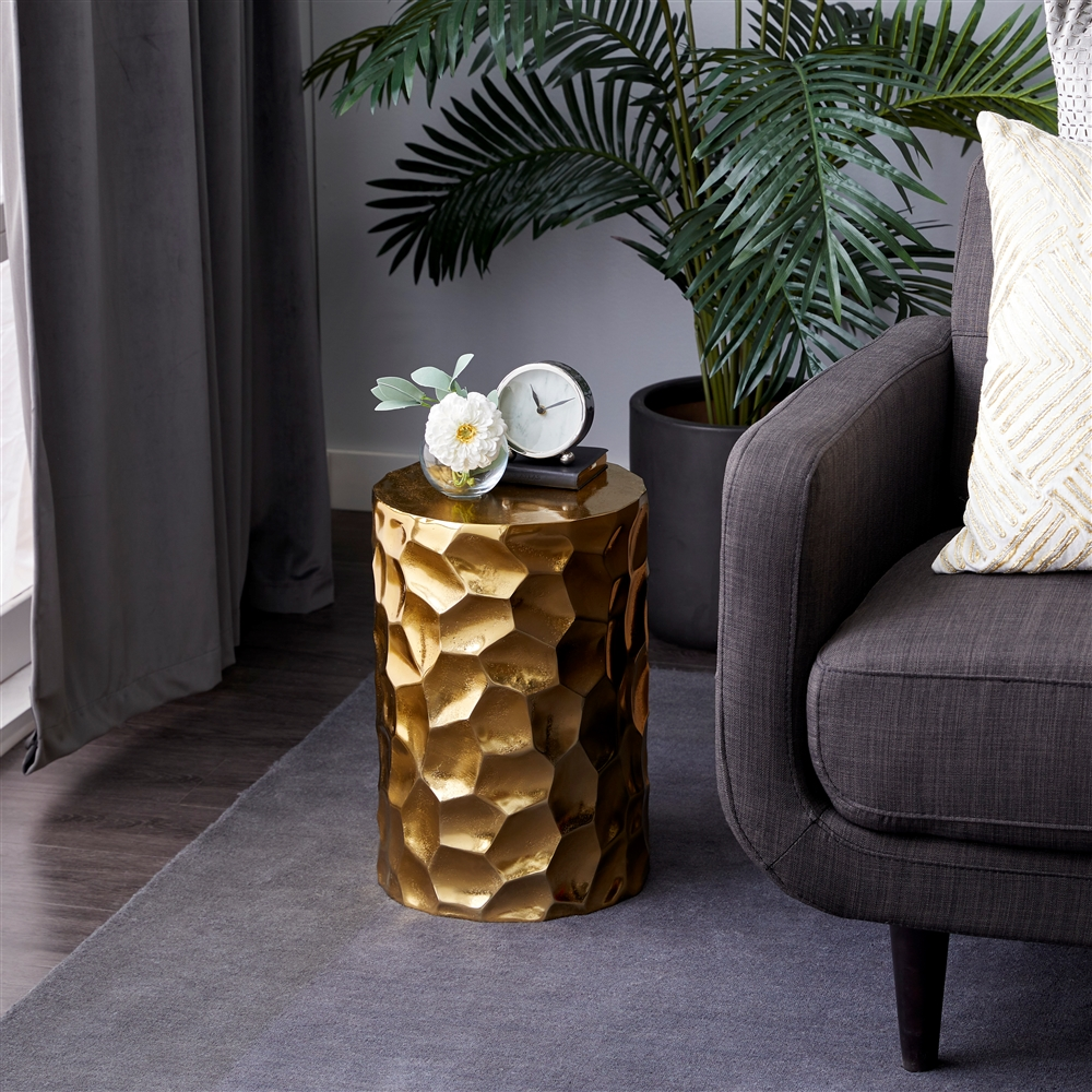 - Gives a striking appearance to an entryway, living room, or home office with a gold finish and hammered texture