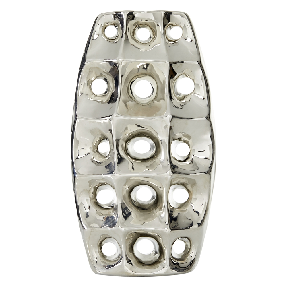 - Metal vase look with a shiny electroplated silver finish over the ceramic vase body with 15 cut-out holes