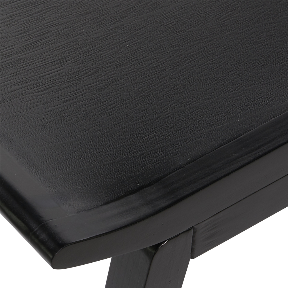 - It features a textured and polished black wooden finish