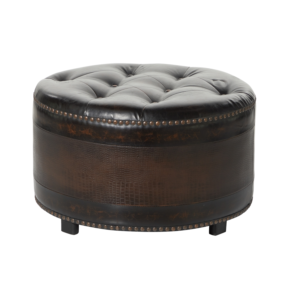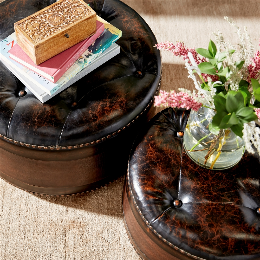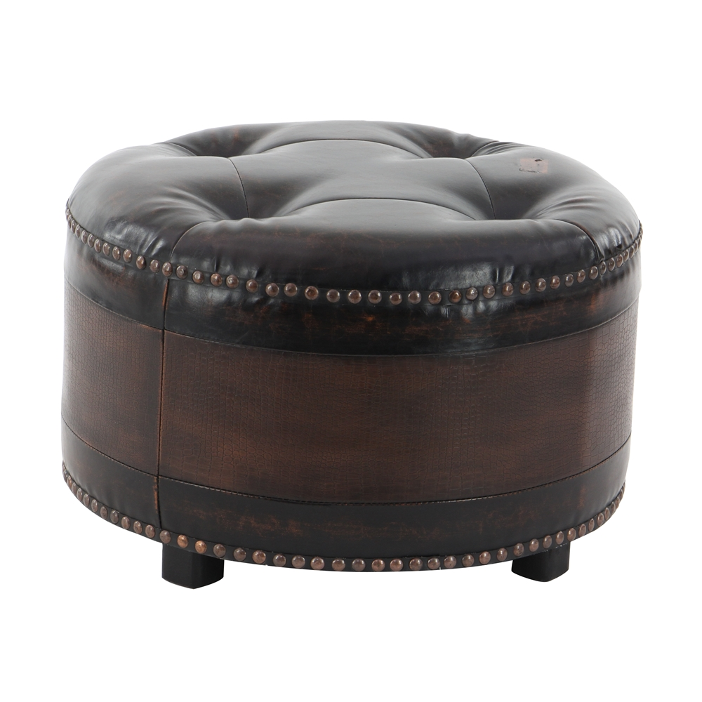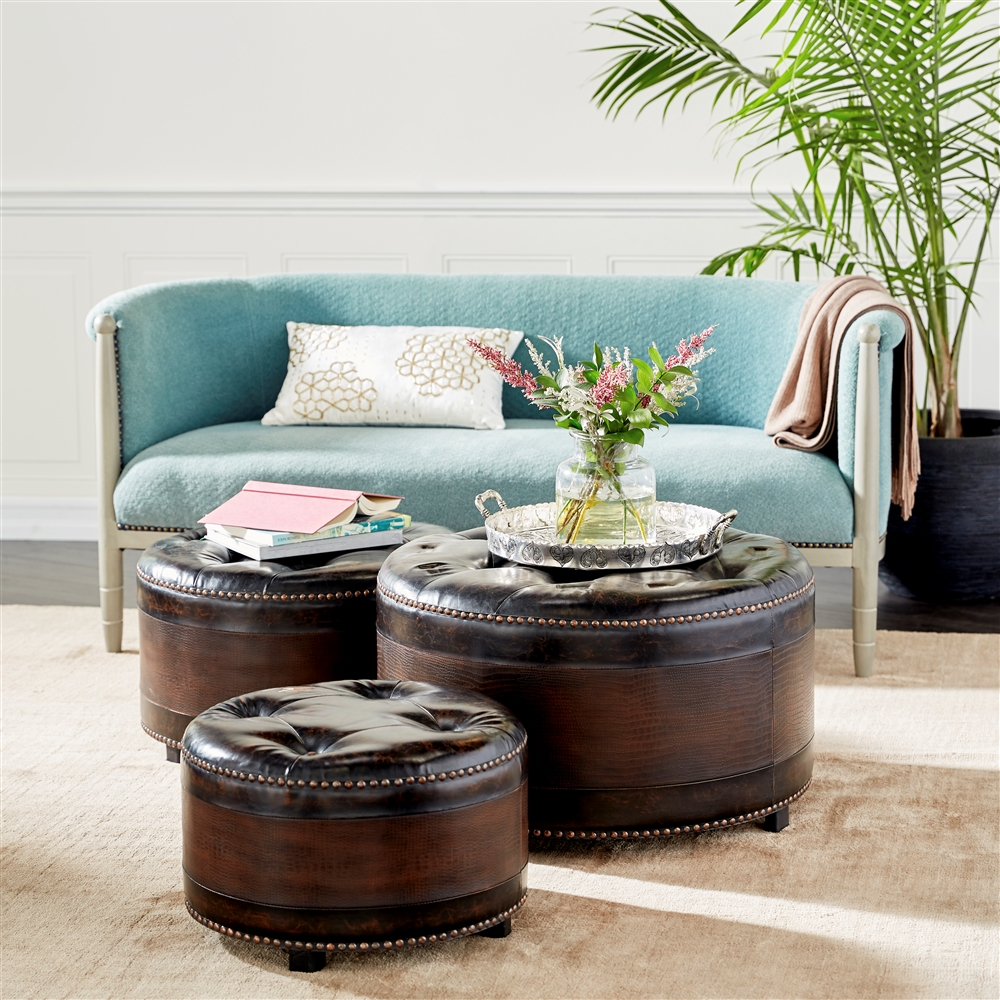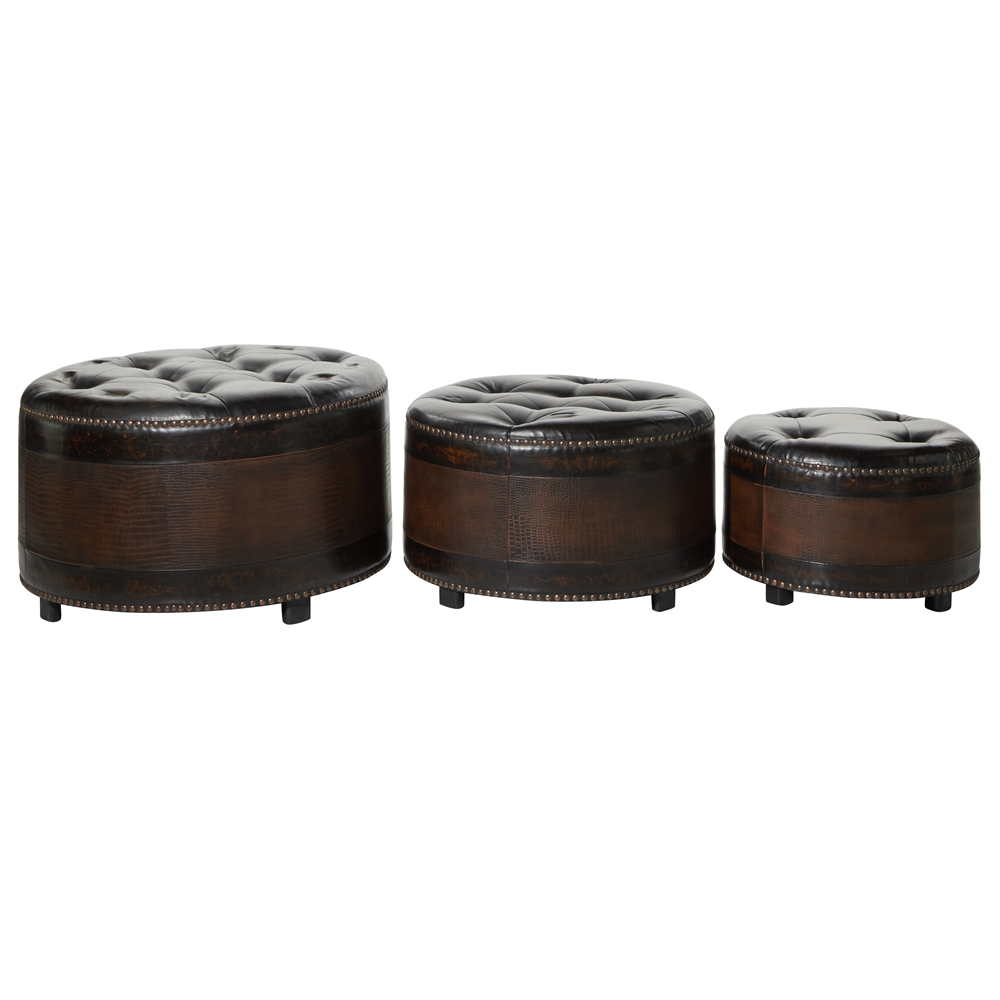 Grayson Lane Rustic Brown Faux Leather Round Ottomans – Set of 3