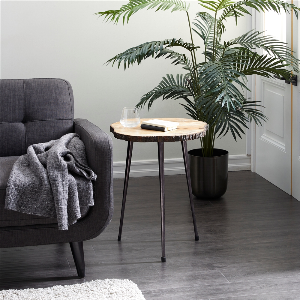 Grayson Lane Rustic Brown Woodand Aluminum Round End Table