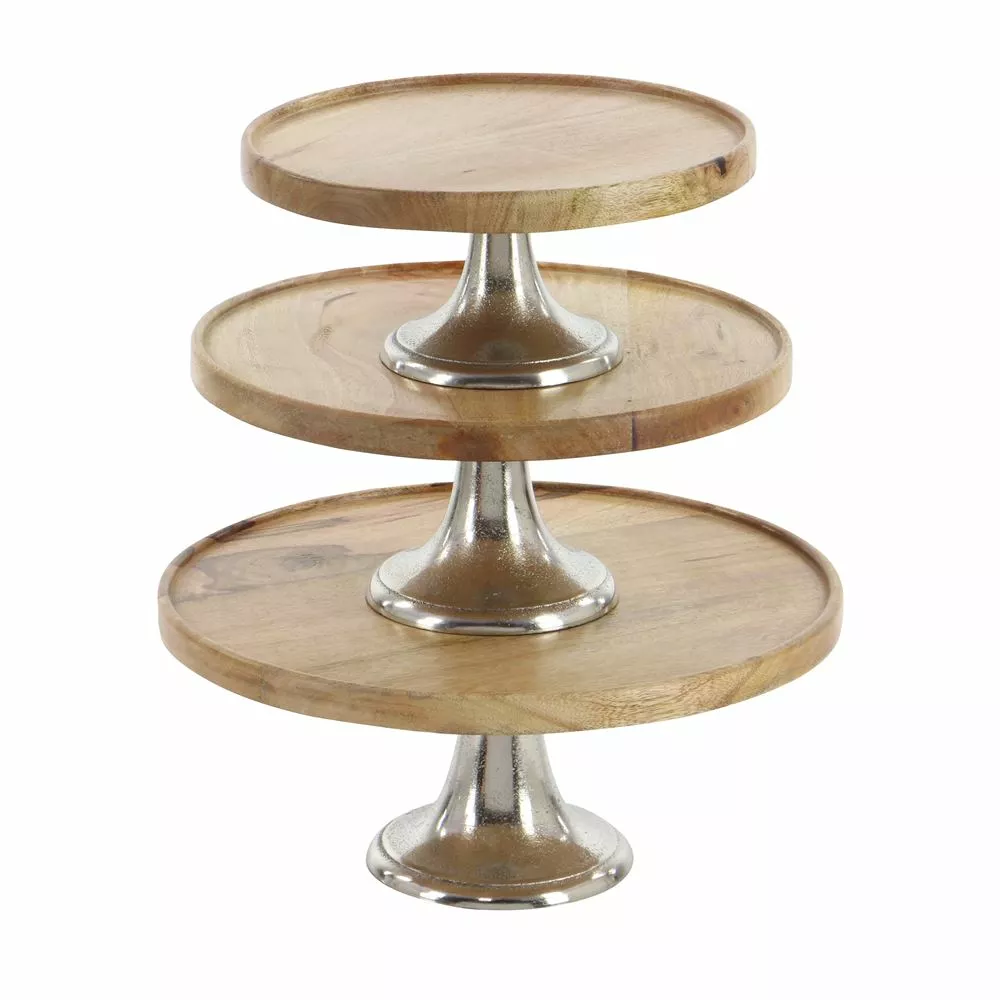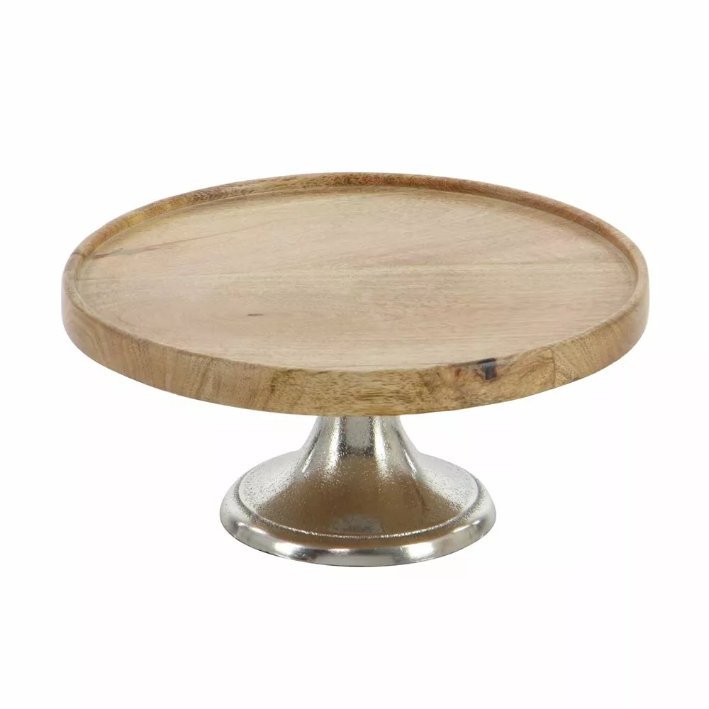 - This wood and aluminum cake plate set will make an excellent display pedestal for cakes, pies, or decor in your home.