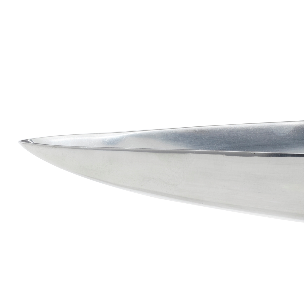 This tray makes a stylish modern addition to a dining table, entryway table or shelf decor. The metallic silver finish and long boat shape offer ample room to display pine cones, shells, decorative orbs, candles or candies in a stylish vessel.