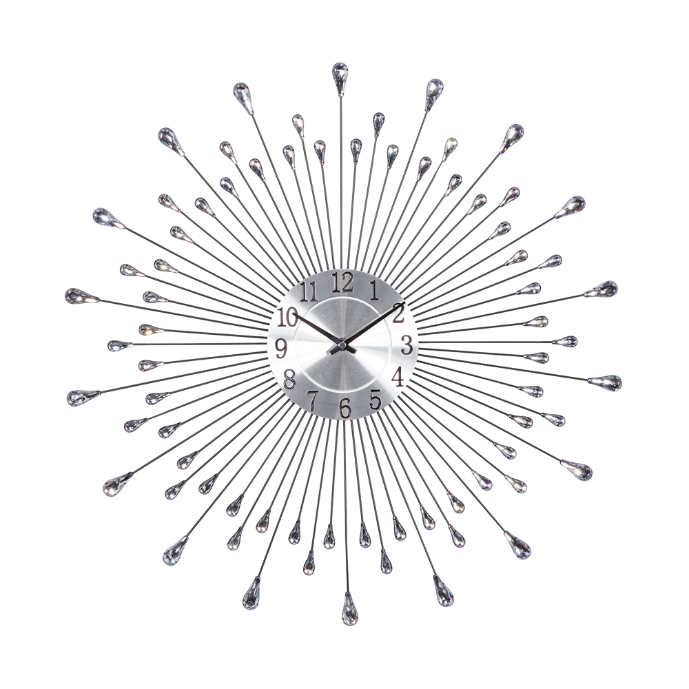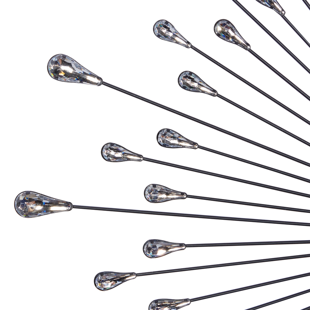 Symmetrical sunburst pattern with silver droplets at the tips.