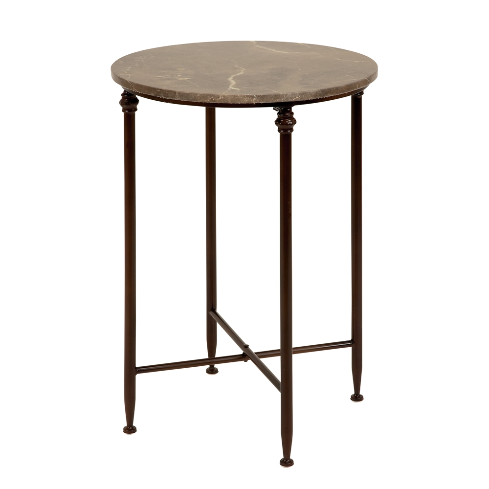 - This accent table features a solid black iron metal frame and round marble surface