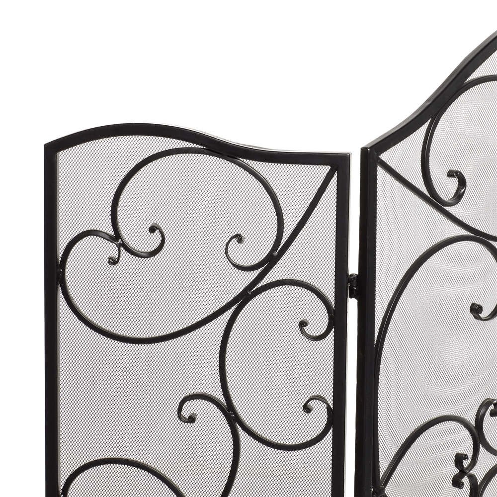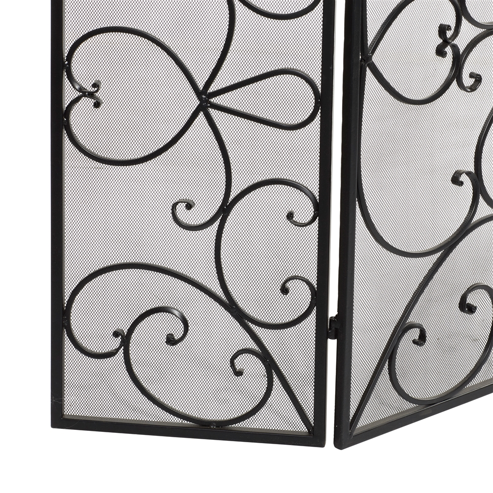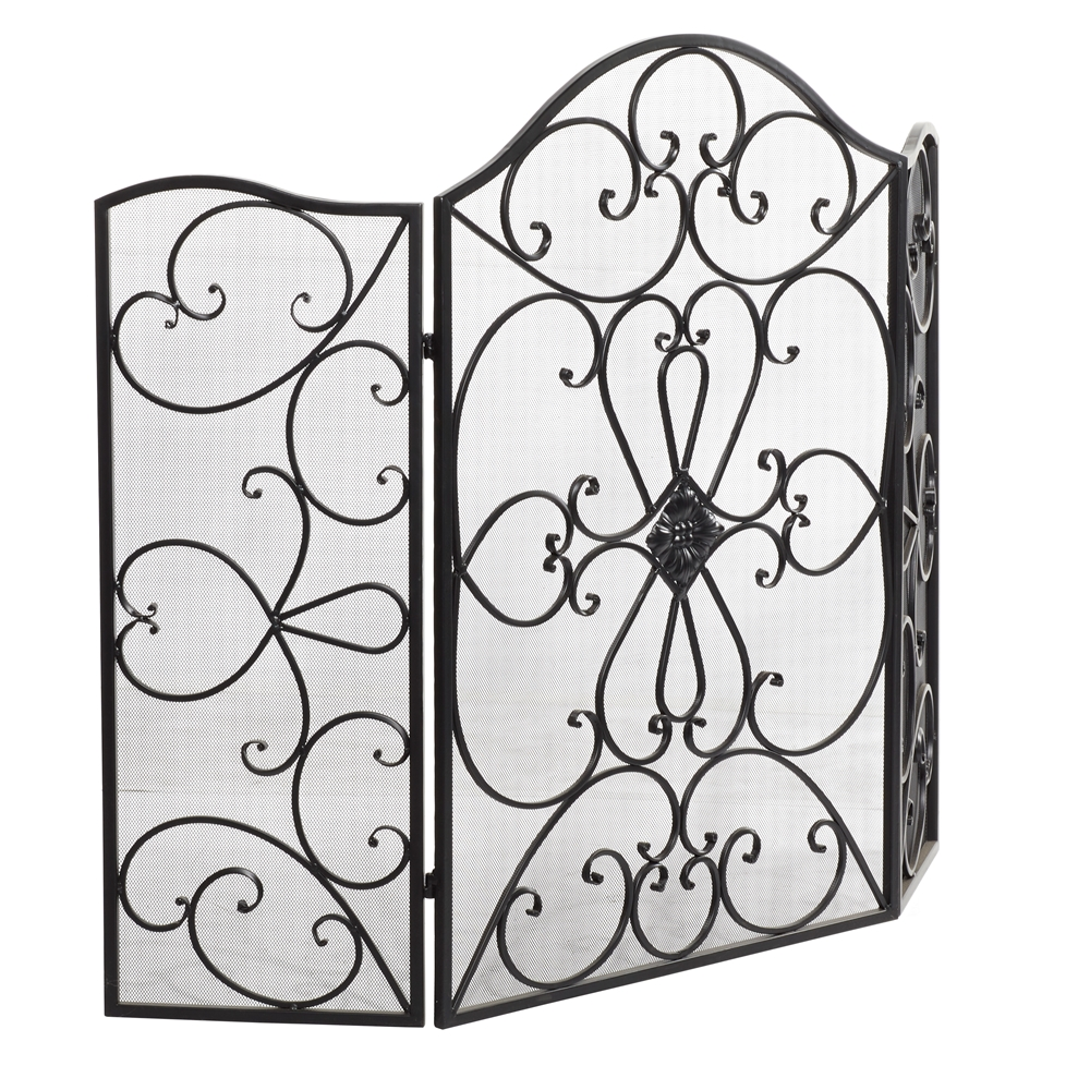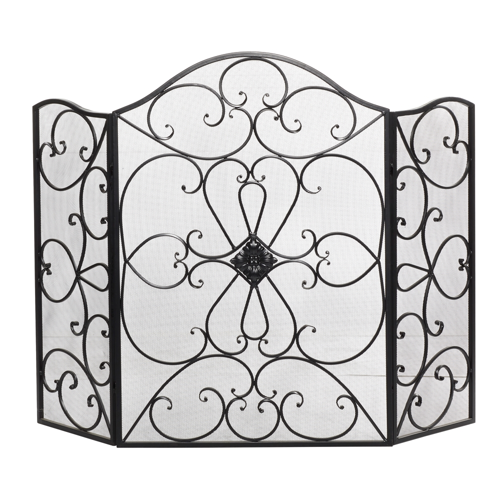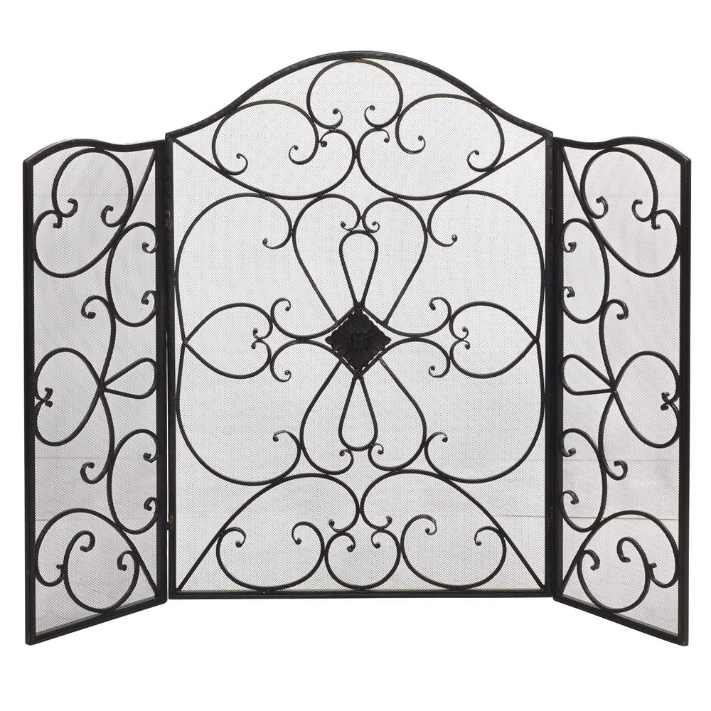 - This traditional fire screen with a beautiful medallion and iron scrollwork is made of solid iron