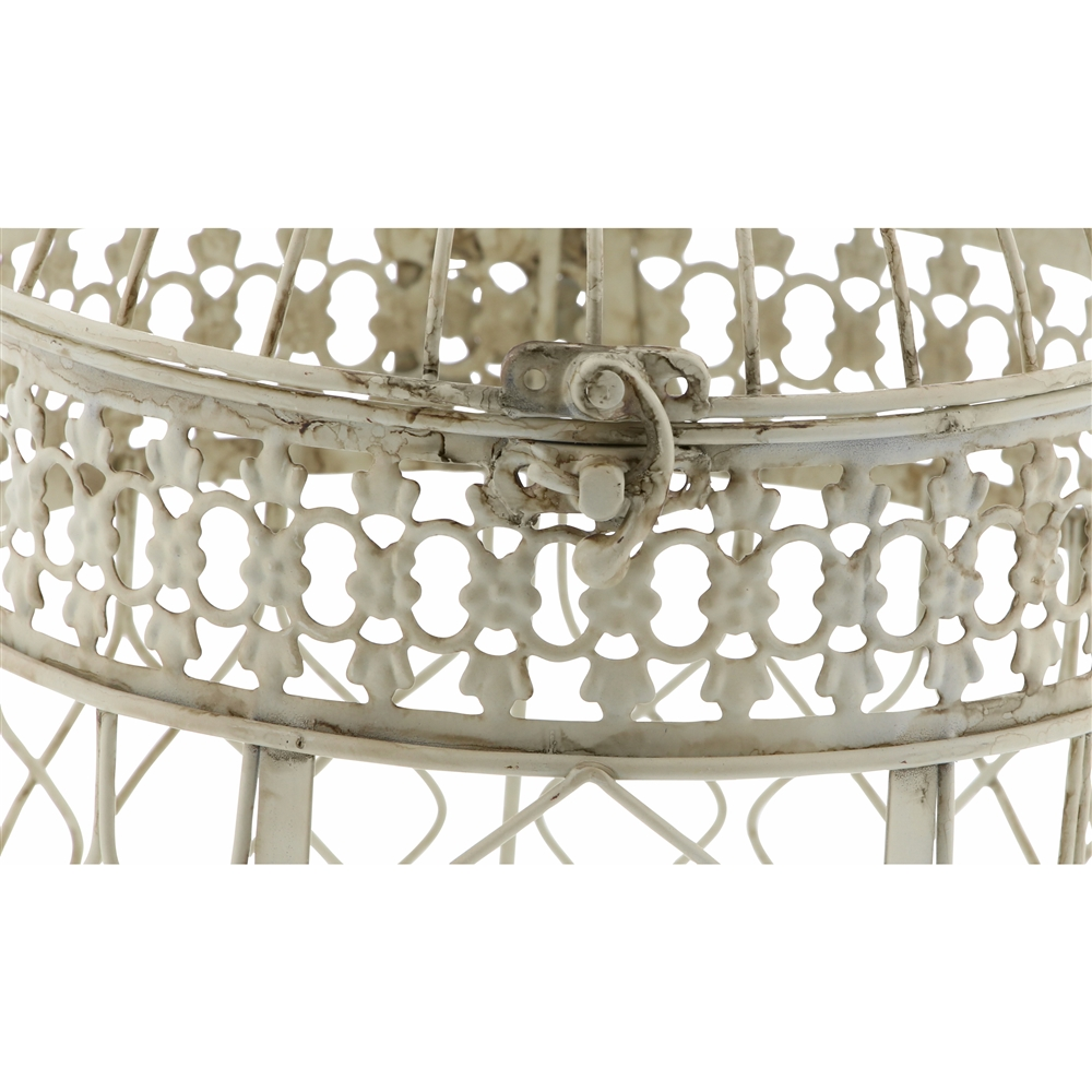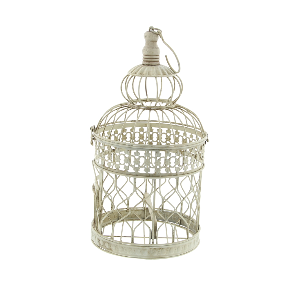 - Antique birdcages with a top latch, a small door and an ornate ironwork