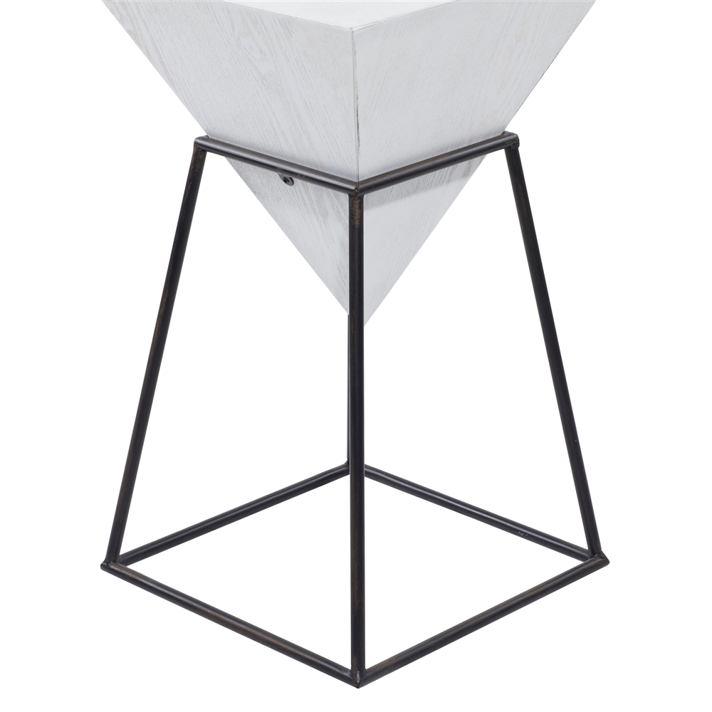 - Pyramid wood made from HDF (high-density fibreboard), Manchurian, and ash woods in a solid iron stand