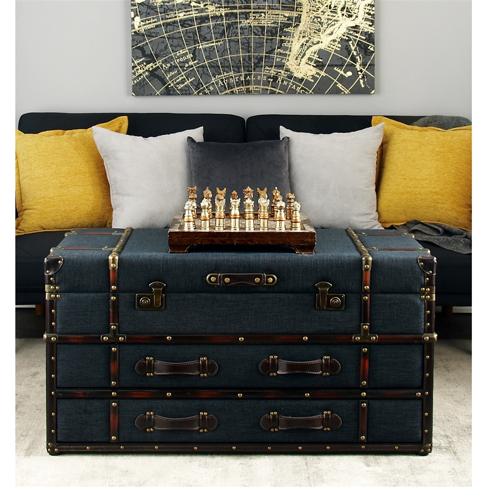 - This traditional style inspired dark blue fabric coffee chest will make a stylish impression in your traditional style living room when displayed with matching furniture and décor