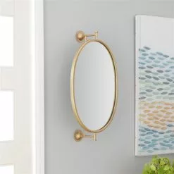 Grayson Lane 15-in X 29-in Oval Gold Contemporary Framed Wall Mirror